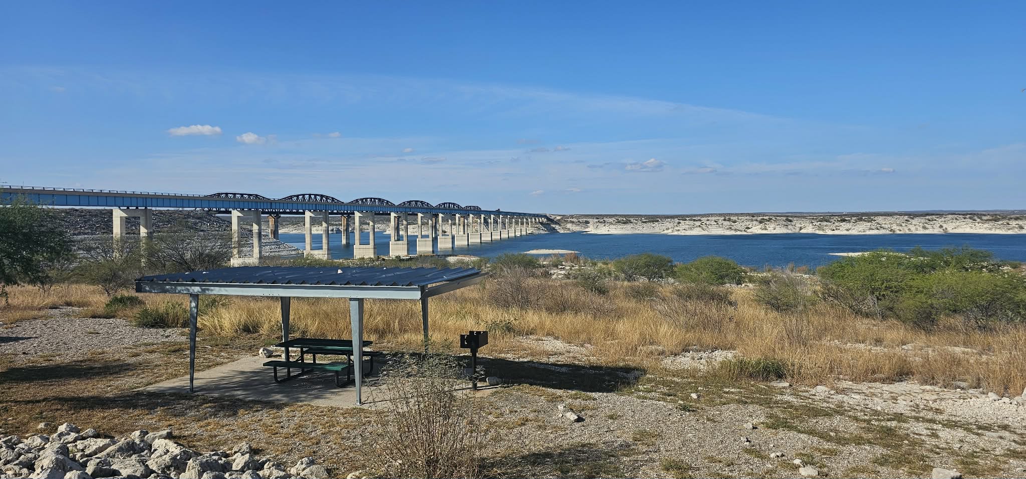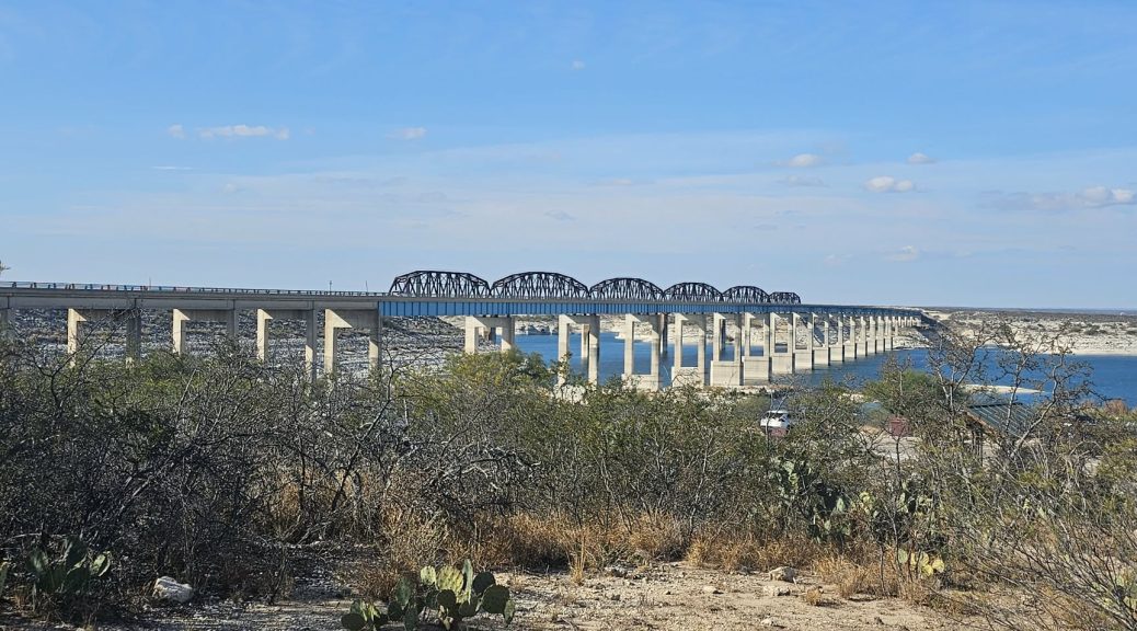 Dziś do przejechania ponad 100 mil, ale według pierwotnego planu mieliśmy zrobić ponad 300, także nie jest źle. Zadecydowaliśmy że jednak zrobimy przerwę na nocny wypoczynek gdzieś w połowie drogi i padło na Amistad National Recreation Area. Jest tu naprawde uroczy, niedrogi camping, bez żadnych przyłączy, ale widok, po prostu bajeczny.