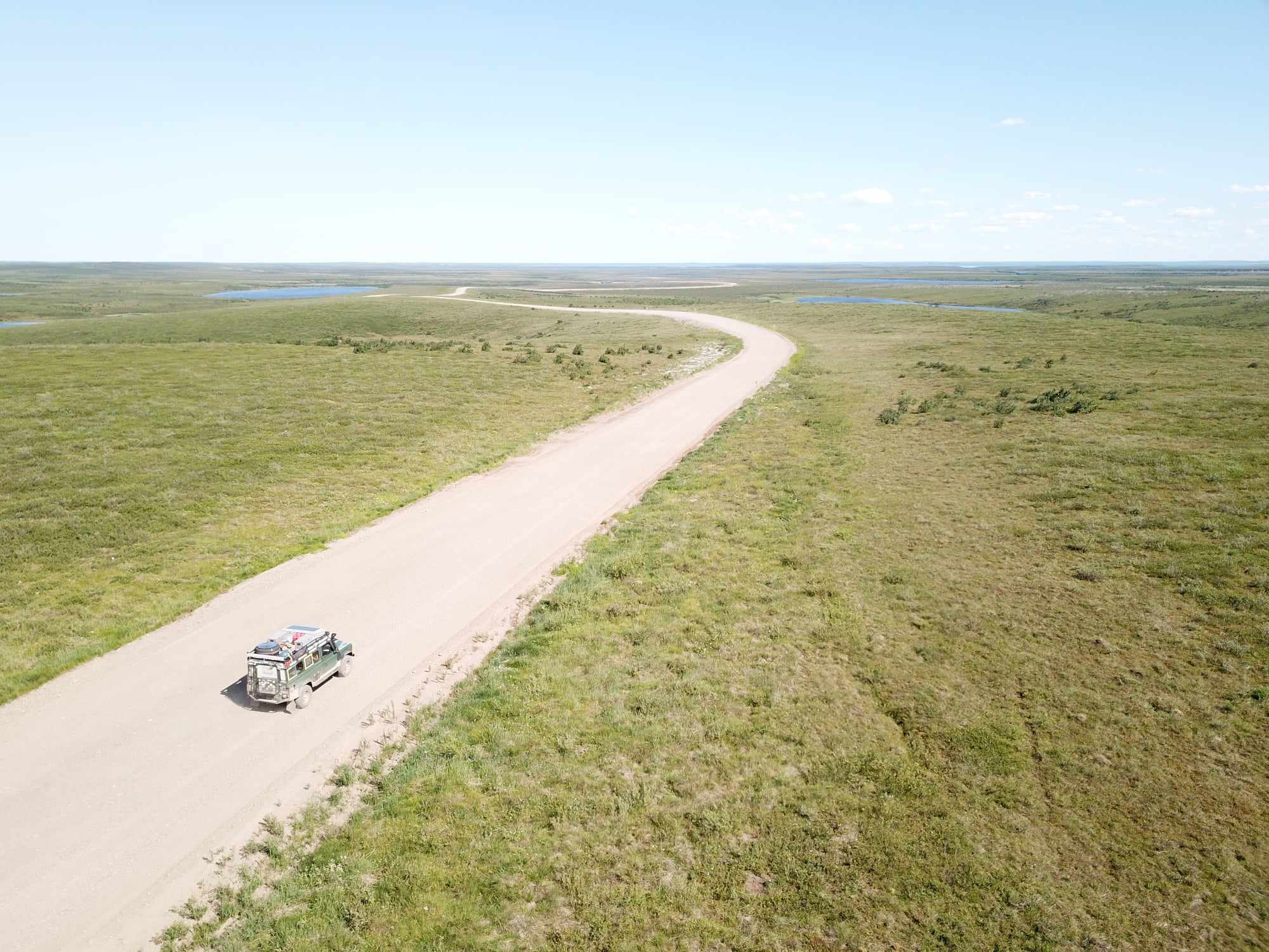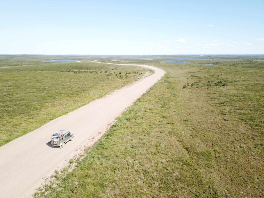 Plan na dziś zakłada pokonanie jak największej ilości km. Znajdujemy się wciąż w niezalesionym terenie. Brak cienia powoduje nagrzewanie się samochodu. Termometr pokazuje 27C w środku. Chcemy uniknąć spania w pełnym słońcu. Na 371 km tankujemy na Eagle Plains, potrzebną ilość drogiego paliwa , aby móc dojechać do asfaltu, gdzie ceny są wyraźnie niższe.
