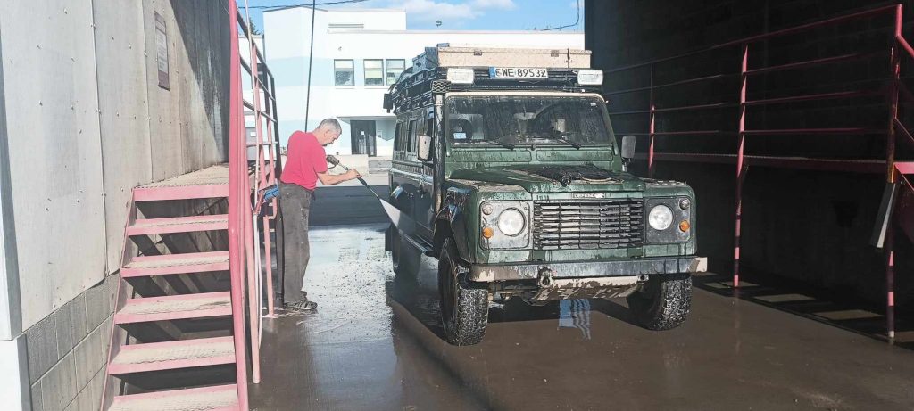 No nic. Godzina mycia i szorowania auta, szczegónie podwozia pozwoliła lekko odzyskać mu dawny blask! Jedziemy ejscze na chwilę nad rzekę Chena do parku, gdzie wycieramy do sucha i pucujemy różne miejsca, trzepiemy solidnie dywaniki, lekko je obmywamy.