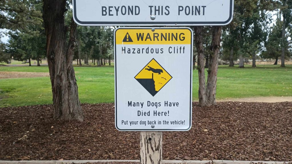 Most wisi 300 stóp nad rzeka płynącą w dole kanionu, o czym informują tabliczki. Jemy szybki obiad, uzupełniamy zapas wody i jedziemy do Bend. Do miasta wjeżdżamy już w deszczu. Na chwile była przerwa, ale potem znowu się rozpadało.