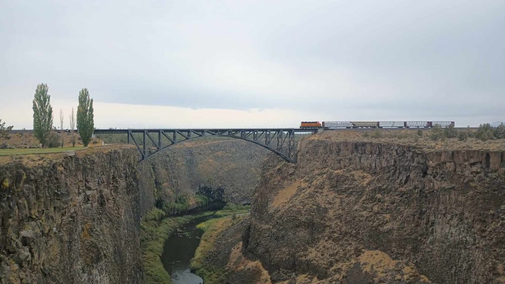 Kontynuując dzisiejszą jazdę, zatrzymujemy się by zobaczyć duży kanion, który robi na nas duże wrażenie, zwłaszcza dwa mosty. Most kolejowy został zbudowany w 1911 roku, a trochę później most drogowy. Dzięki temu transport towaru i ludzi stał się możliwy, a Oregon mógł stać się bardziej cywilizowany.