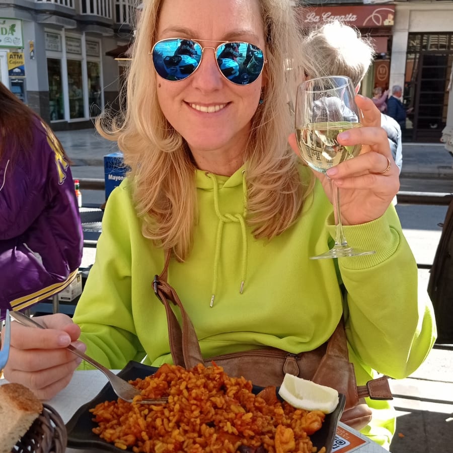 Po wizycie w muzeum przyszedł czas na andaluzyjską paelle de marisco, oczywiście w akompaniamencie białego wina.
