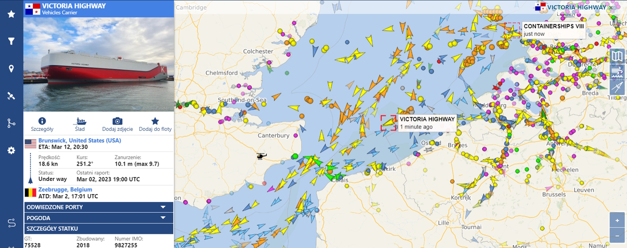 Wieczorem sprawdzamy pozycje „naszego” statku. A raczej statku na którym płynie nasz Defender. Jest nadzieja….. wypłynął z Europy do USA