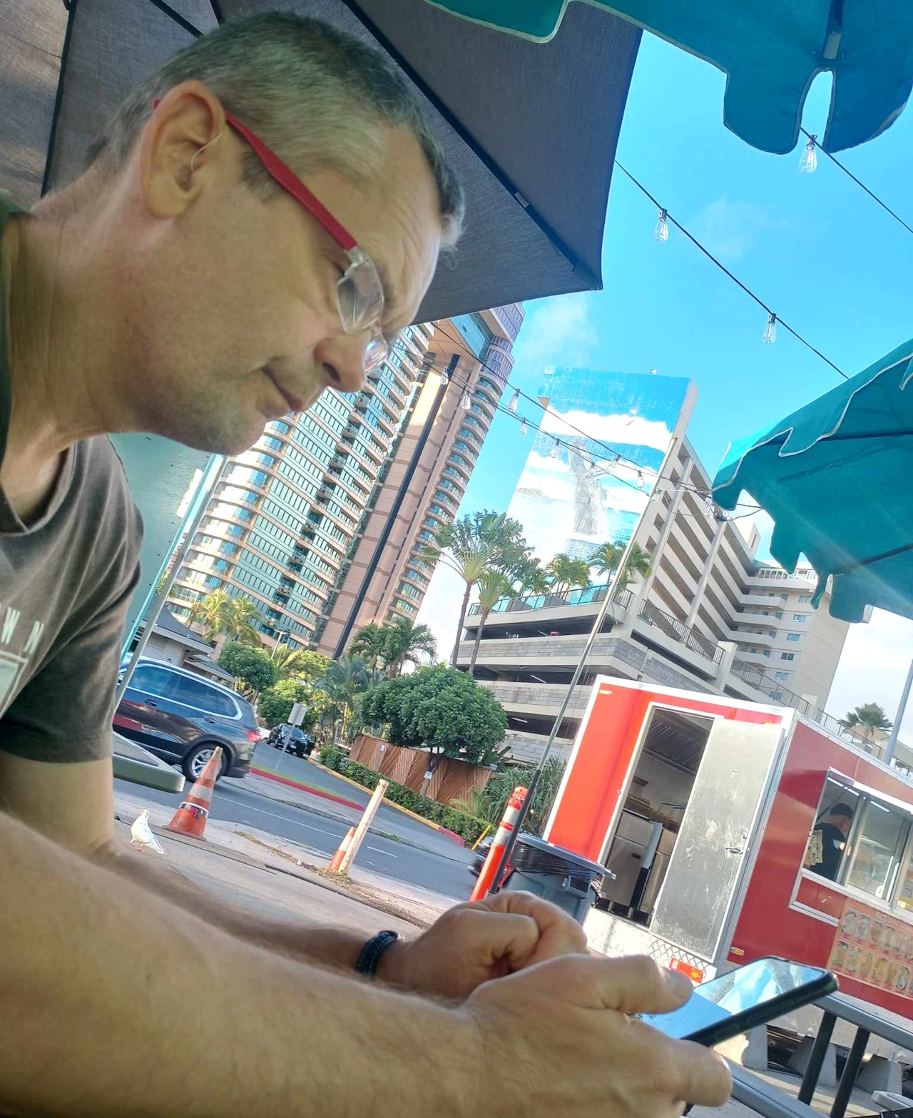 Jesteśmy już mocno głodni. Całe szczęście naprzeciwko naszego budynku stoi kilak food Track. Zamawiamy jakieś jedzeni, a potem idziemy rozeznać się po okolicy…