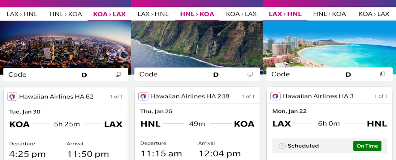 Poniżej na zdjęciu widać nasz plan na kolejne dni pobytu na Hawajach. Mamy trzy bilety lotnicze które obejmują pobyt na dwóch wyspach. W tym w Honolulu.