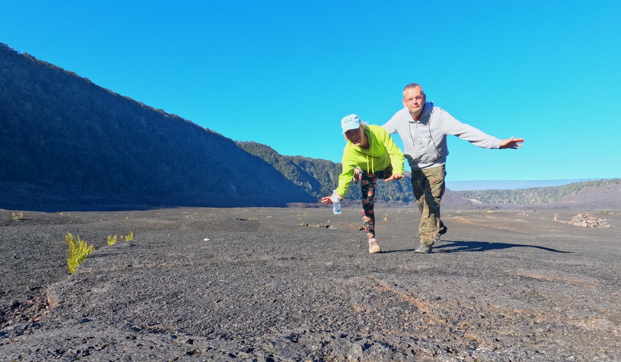 Widok rekompensuje duże. Dookoła mnóstwo lawy, jest jej zdecydowanie najwięcej ilościowo, jak do tej pory widzieliśmy, a widzieliśmy już wiele wulkanów zarówno w USA, jak i w Ameryce Południowej. Lawa powstała po wybuchach i erupcjach Kilauea rzeczywiście jest wyjątkowa.