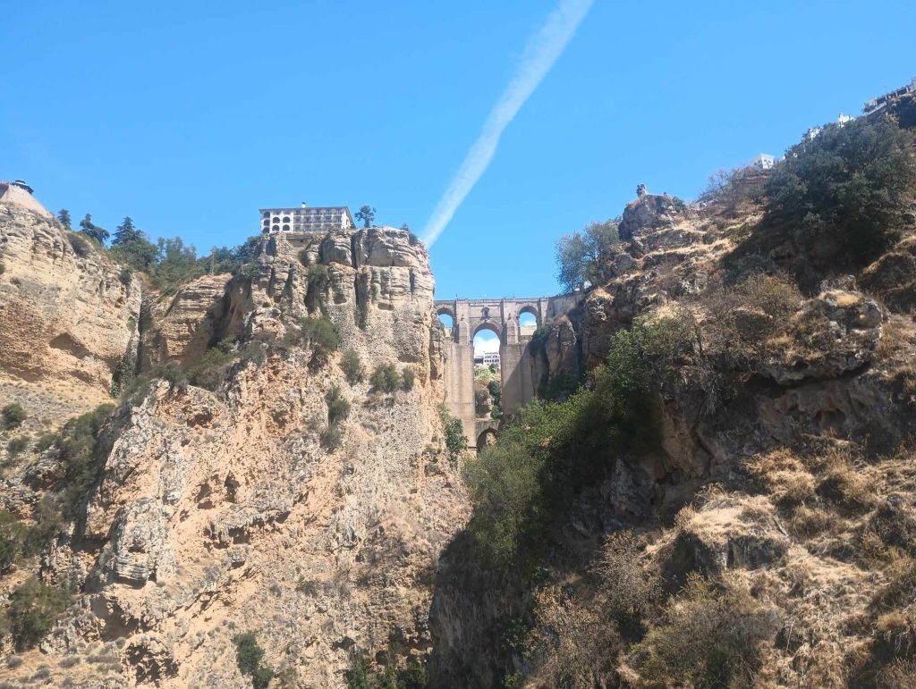 Ruszyliśmy zatem, wyjechaliśmy z miasta przejechaliśmy przez góry, gdzie była mgła, deszcz, granatowe chmury. A w Rondzie piękne słońce. Zaczęliśmy od dołu, by zobaczyć charakterystyczny dla Rondy most kamienny.