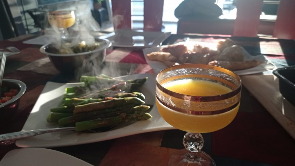 Niedziela razem we czwórkę w domu z Andrzejem i Iwoną. Jemy spokojny obiad, dziś pyszna rybka Seabass w akompaniamencie batatów czyli tutejszych camote. Po prostu jak zwykle niebo w gębie z dodatkiem szparagów. Z tym słynnym dressingiem co Iwona robi, czyli otwiera butelkę i polewa gotowe, ugotowane 3 minuty szparagi. Co nam Andrzej nagadał, jak pierwszy raz gotowaliśmy mu szparagi… Że Iwona sama robi dressing. A dopiero po czasie powiedziała nam, że to z butelki… gotowiec…