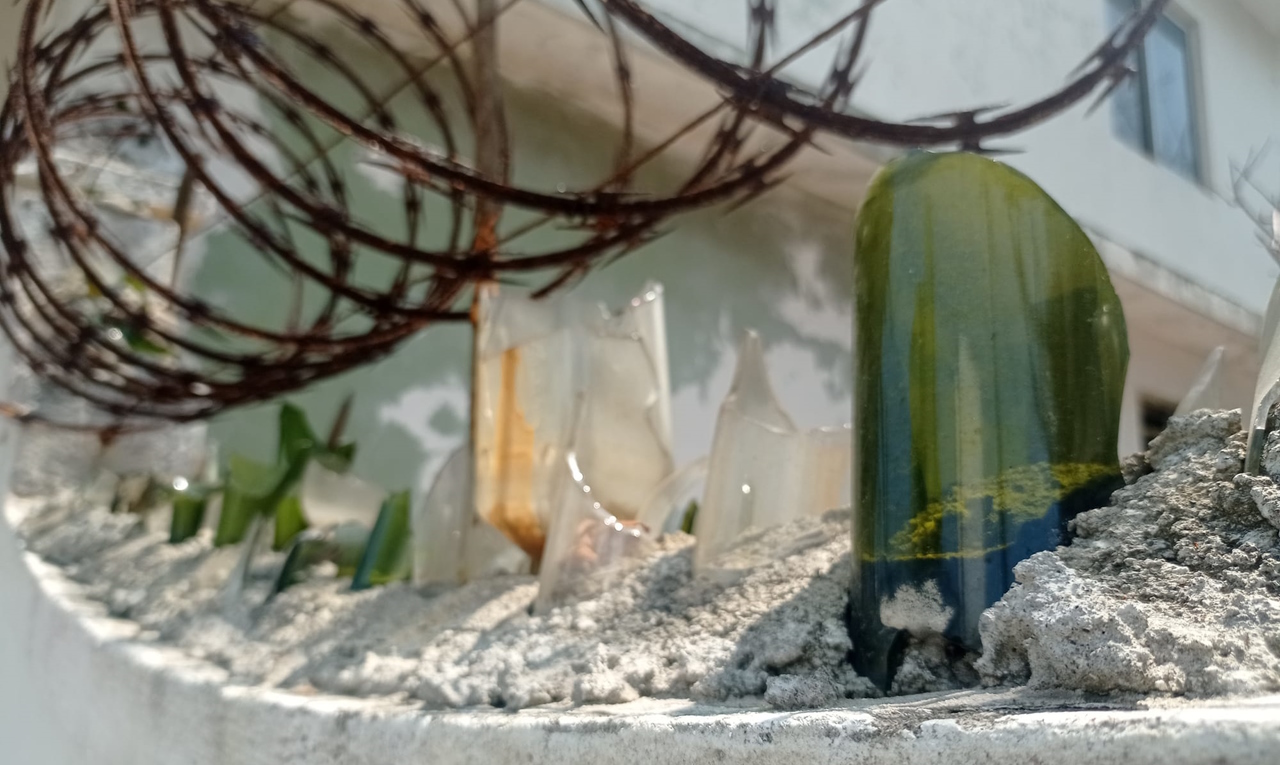 Wracamy też na piechotę. Także dziś mamy w nogach pewnie ponad 6 km. Poczyniliśmy też różne obserwacje. Spora część murów otaczających posesje i budynki ma nietypowe wykończenie. „Korony” ze stłuczonego szkła i kolczastego drutu zapewne skutecznie powstrzymują intruzów. Chociaż ja bym racze wolał nawet nie próbować sforsować takiego zabezpieczenia.