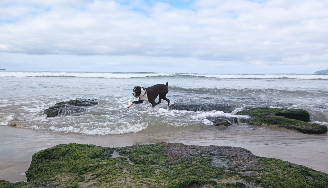 Wybrzeże w naszej okolicy nabrało Karaibskiego klimatu. Przynajmniej tak wygląda fragment plaży widoczny z tarasu. Działające fale zabrały sporo piasku nieco w głąb oceanu i utworzyły niewielka łachę. W czasie odpływu i przy odpowiednim oświetleniu widoczne pod szmaragdową woda skały mienia się kolorami. Ostatnie kilka dni nie wychodzimy za bardzo na miasto czy na budowę. Planujemy wyjazd za ocean…. A w międzyczasie jest czas na chwile spaceru po plaży z Alim….