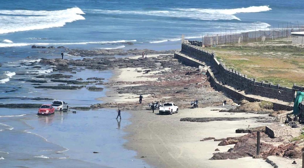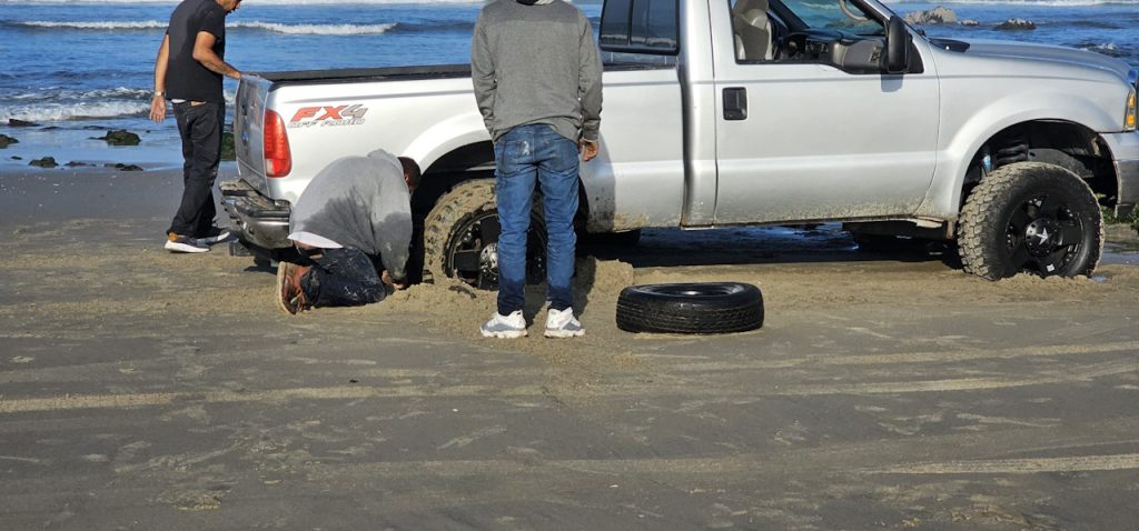 Tyle w teorii ;). A w praktyce po plaży jeździ bardzo wiele osób. No i właśnie z taką sytuacją mieliśmy do czynienia właśnie dziś od rana. Okazało się że kilka samochodów podczas odpływu próbowało przejechać poza linie skał które widzimy z naszych okien. No i pechowo jedno z nich utknęło. A potem sytuacja się mocno skomplikowała…..!