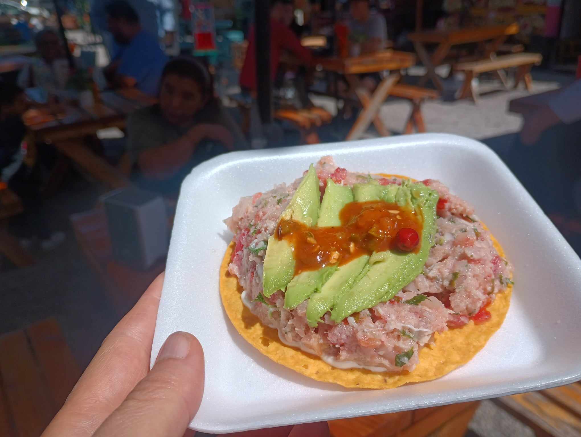 W sobotę zaszaleliśmy i oprócz tacosów zjedliśmy też tostadę z ceviche. No dobra. żartowałam. Tylko ja zjadłam, a Krzysiek nie, bo on preferuje jednak mięso. Ale pyszne było jedno i drugie.