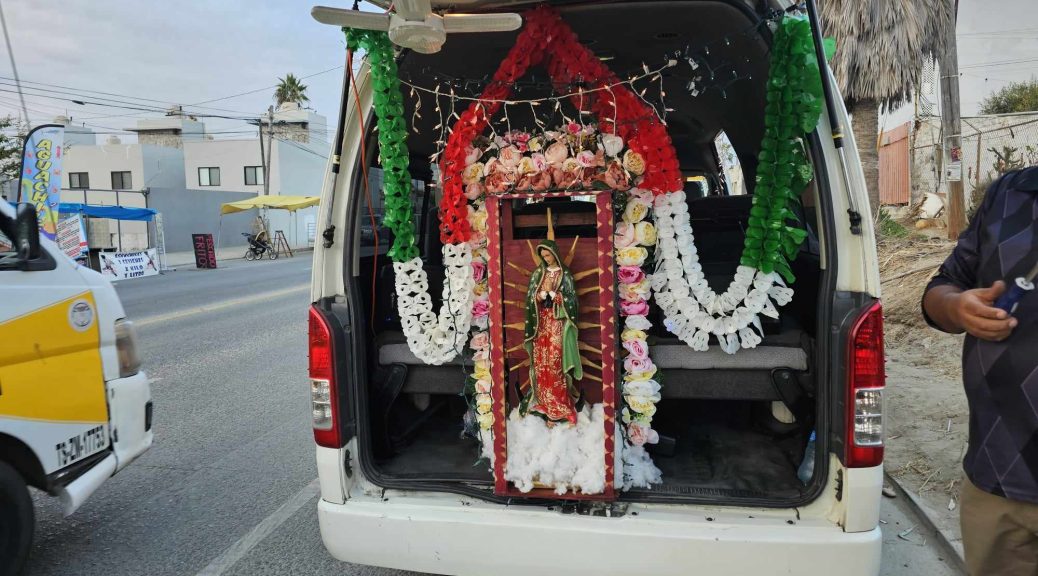 Nawet w Meksyku to dzień Oliwki, która dziś obchodzi urodziny. Od rana świętujemy, dzwonimy przez Whatsappa i składamy życzenia. A potem okazuje się, że to nie tylko dzień Oliwki, ale też w Meksyku święto Mati Boskiej z Guadelupe. Także przez ulice Playas de Tijuana idzie „jeżdżąca” procesja. Peregrynacja z obrazem. Obwieszone światełkami i girlandami, balonikami uliczne „colectivo”, czyli busiki, przewożące ludzi, wiozą tym razem święty obraz.
