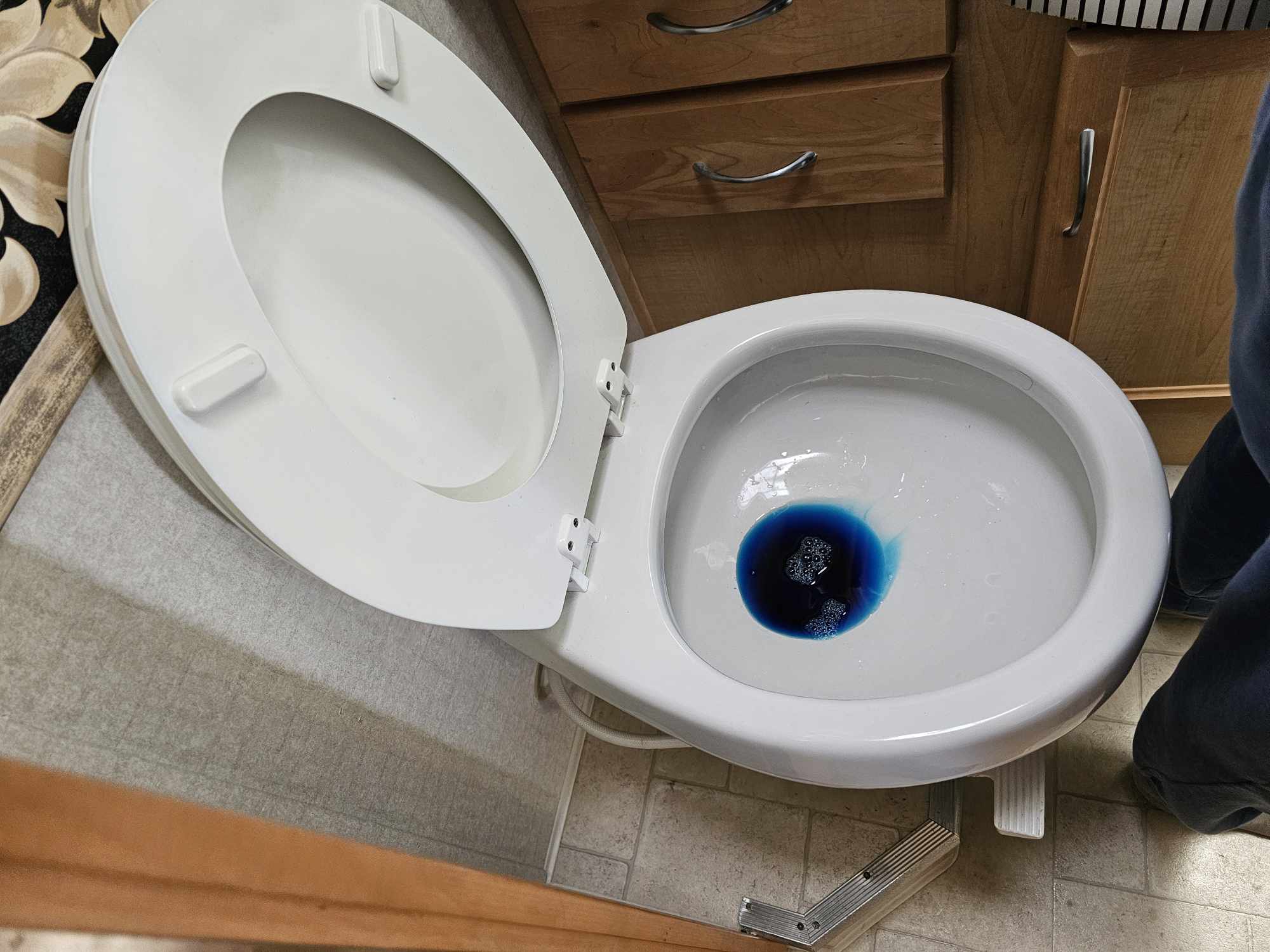Najpierw w takich przypadkach spuszcza się zrzut z toalety, a potem szarą wodę, która przepłuuje troche niecyzstości w wężu. Dodatkowo z powodu tego że kamper nie był długo używany przepłukaliśmy wodą z węża czystą i wlaliśmy do zbiornika pustego już na czarną wodę chemię. Specjalną na te okoliczności.