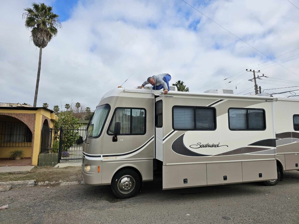 Krzysiek wbił się na dach, wszedł po tylnej drabince i przeprowadził dochodzenie, jak tam to działa. Potem szukaliśmy w internecie, gdzie można on-line kupić.