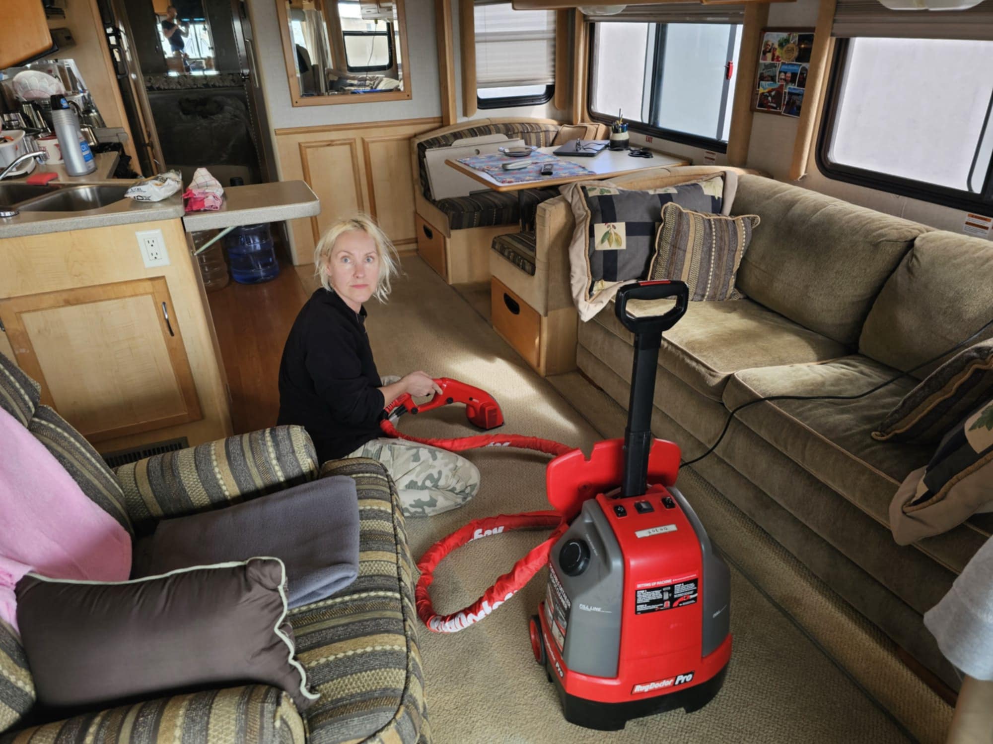 Po południu Iwona przywiozła nam wypożyczone urządzenie do czyszczenia i prania dywanów i tapicerki. Zrobiliśmy zatem wielkie sprzątanie i nasze dywany są super odświeżone. Jesteśmy zadowoleni. Dosyć zadowoleni. Oczywiście nie zrobimy z tych dywanów nowych ale znaczne odświeżenie jest… i oczyszczenie…