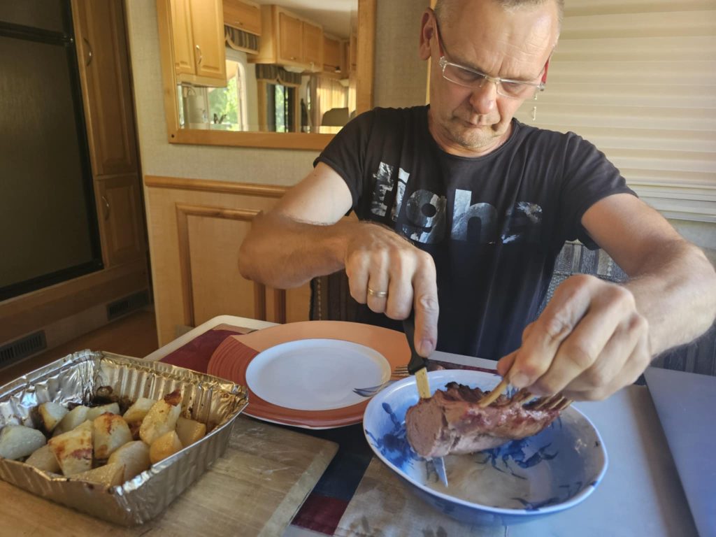 RObimy wspaniay sok marchewkowy, fajnie że mamy sokowirówkę. Krzysiek wieczorem griluje, robi wspaniałą baraninę, którą wyciągnęliśmy z zamrażarki.