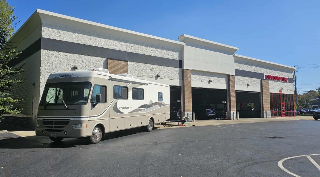 Na razie ciągle jedziemy na północ, dziś wyjeżdzamy z jednego kampingu i jedziemy na drugi. Przed nami nie za długa droga, która rozciąga się niemiłosiernie. Głównie dlatego, że musimy wymienić / kupić opony w przyczepce. Okazało się że były takie słabe, chińskie i beznadziejne, że się starły, zdarły. Musimy kupic nowe. Co czynimy. Jedziemy do sklepu i warsztatu i wymieniamy. Nie ma czasu na pierdoły. 190 Usd. i dwie godziny czekania.