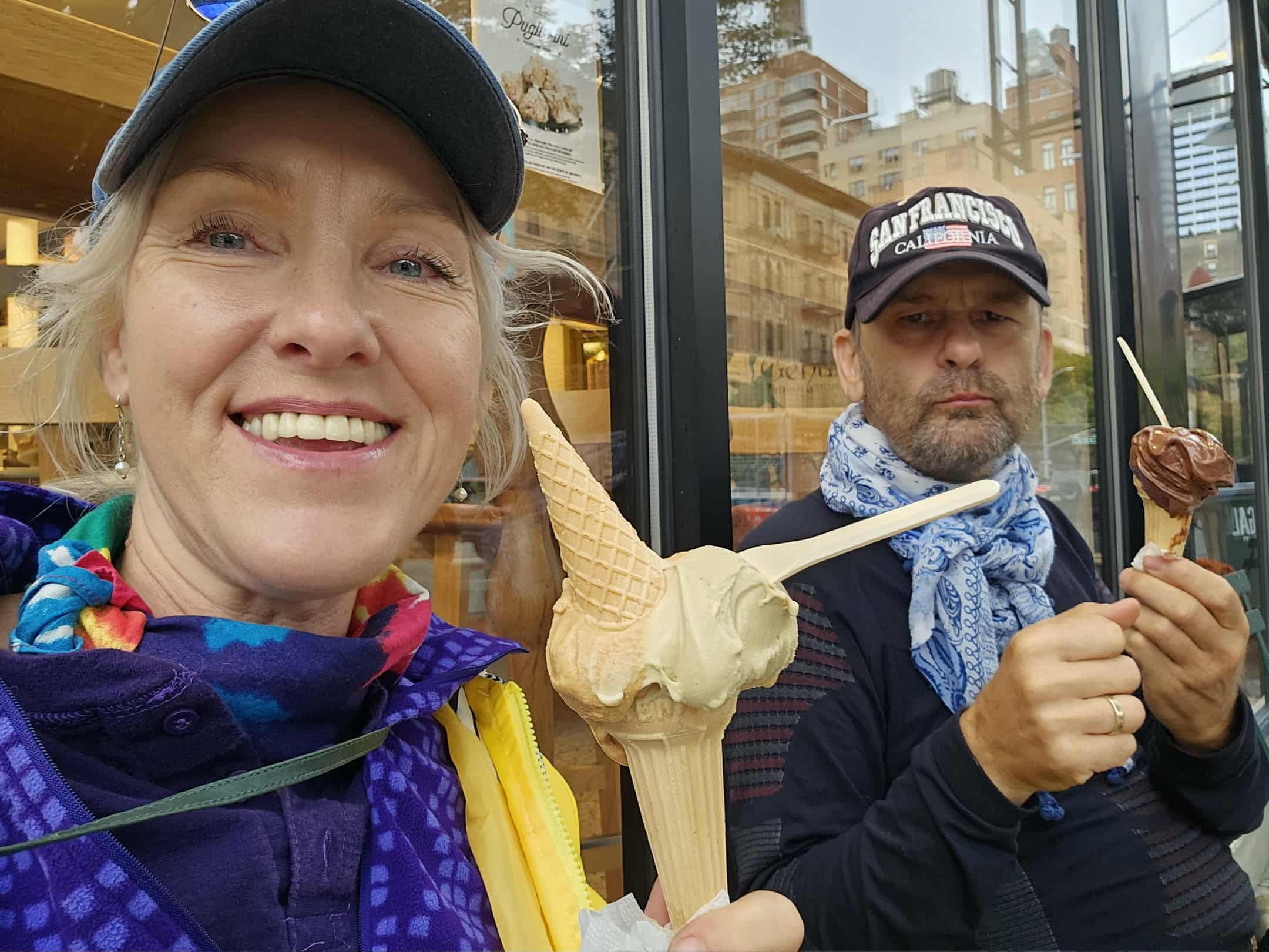 Jedziemy od wschodniej części Manhatanu, chińską dzielnicą, potem East Side, potem trochę Central Park, potem West Side, Soho, i tak dalej, dojeżdżamy aż pod Byka przy Wall Street. Cudowny dzień. Pizza, lody, znowu lody i cały czas rower. Można szybko i fajnie się przemieszczac.