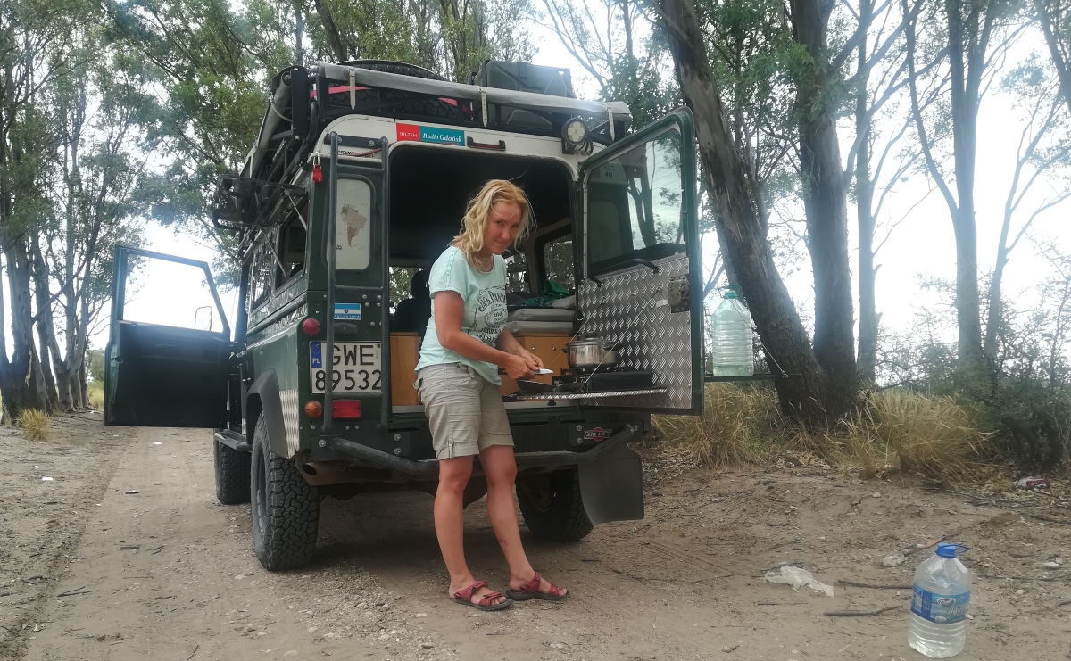 Na obiad w międzyczasie, zaraz po wjechaniu do prowincji de la Pampa, jemy spaghetti z czosnkiem. Jak to możliwe, ze w samochodzie zgubiła nam się cebula??