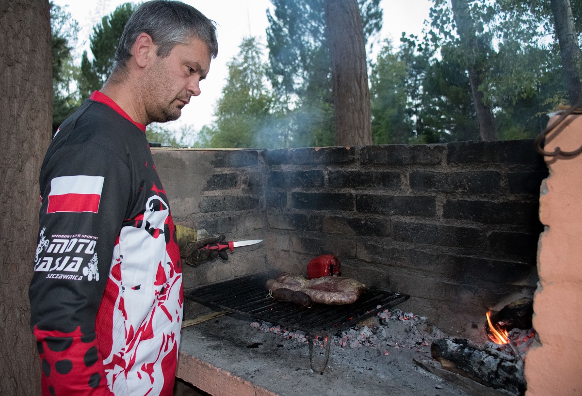 Zabieram się do pieczenia koziołka, tak jak obiecywaliśmy jakiś czas temu, kiedy się spotkaliśmy w El Bolson. Rozpalam ognisko, przykładając dużą wagę do starannych procedur przez kolejne dwie i pół godziny, smarując delikatnie mięso masłem, piekę je powoli. Dziewczyny plotkują i przygotowują sałatki. Wieczór upływa fajnie i rozmownie przy argentyńskim Malbec. Anka przywozi też piwo, które próbujemy..