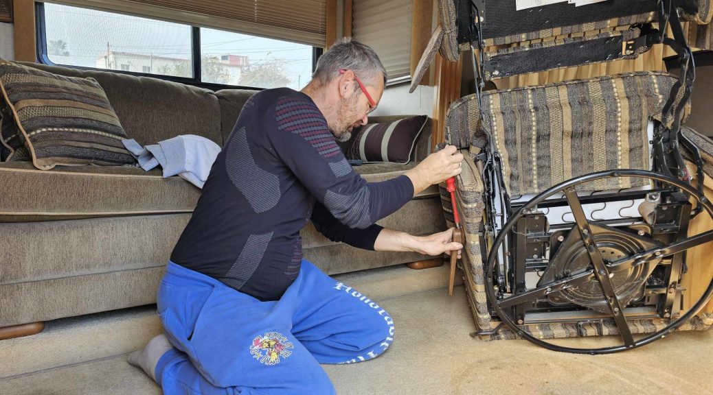 Wyciągnęliśmy przedłużacz i podłączyliśmy kampera do zewnętrznego zasilania.