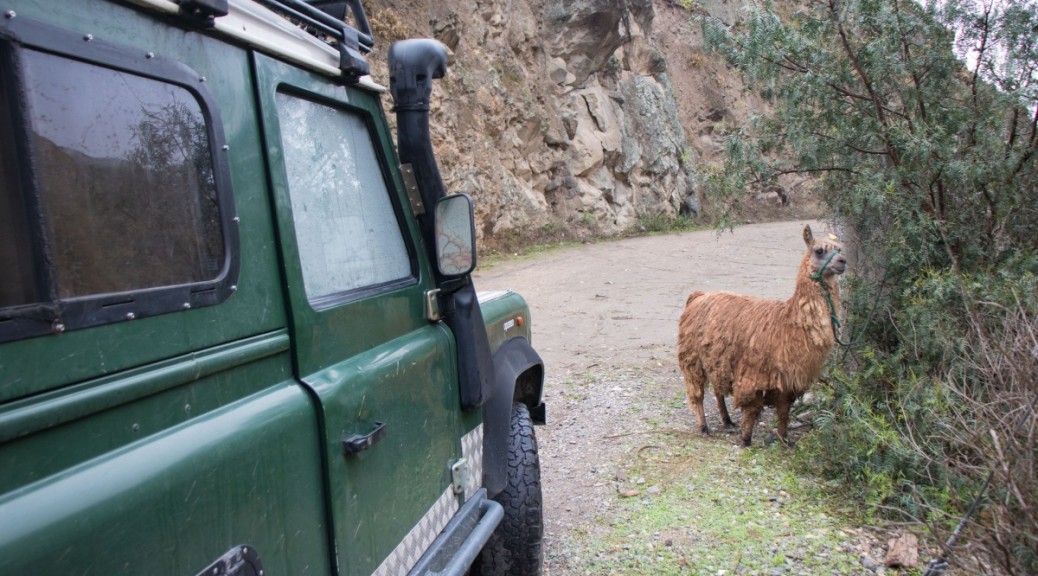 Noc była zaskakująco ciepła. Być może sprawiły to wysokie ściany kanionu w którym jesteśmy. A po drugie wysokość się trochę obniżyła, bo spaliśmy na około 2200 m. Czym by to nie było spowodowane, to dobrze dla nas. Bo można z rana wyjść siku bez ryzyka poważnego zamarznięcia… Około 9,30 pojawił się pociąg z turystami. Ale nie tak normalnie. Raczej „sfrunął” z góry, a tak naprawdę, to na oko jakieś 200 m wyżej biegnie jedna z nitek linii kolejowej. Lokomotywa z 5 wagonami okrążyła górę, aby po kilku minutach pojawić się kilkadziesiąt metrów niżej na torach biegnących już prawie do stacyjki końcowej. Jednak przed wypuszczeniem turystów cały skład przejechał blisko nas z drugiej strony strumienia i tam na specjalnym odcinku torów zawrócił, ustawiając się przodem do powrotu. Teraz wszyscy turyści mogli wysiąść i robić fotki oraz kupować pamiątki. A jeszcze wczoraj wieczorem i dziś rano miejsce wydawało się całkowicie opuszczone…