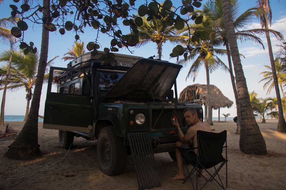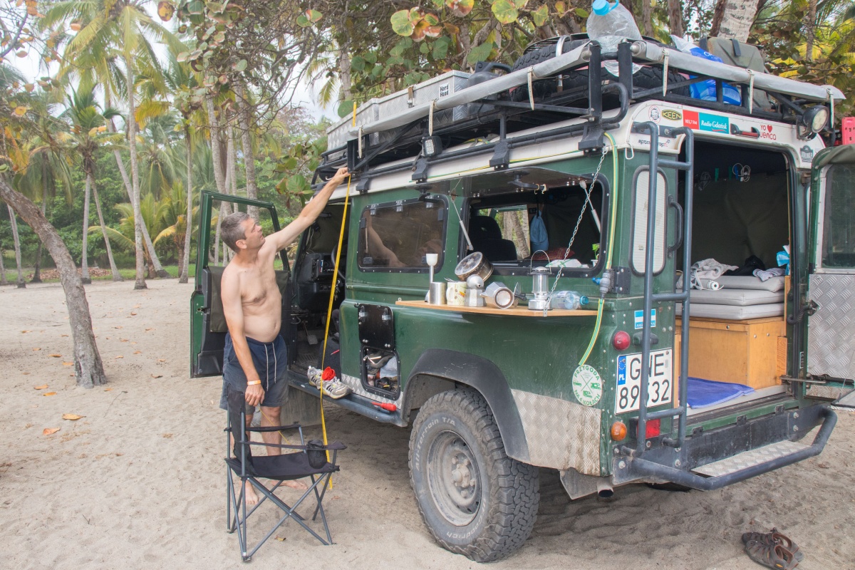 Dziś prawie leniwy dzień. Krzysiek trochę grzebie przy aucie. Zakłada nowe sygnały dźwiękowe, prezent od Michała. No i lokalizuje wreszcie problem ze światłami. Bo nie mieliśmy od jakiegoś czasu awaryjnych i świateł pozycyjnych. Ja głównie leżę na hamaku… potem sprzątam trochę w szafkach w aucie bo już się bałagan zrobił.