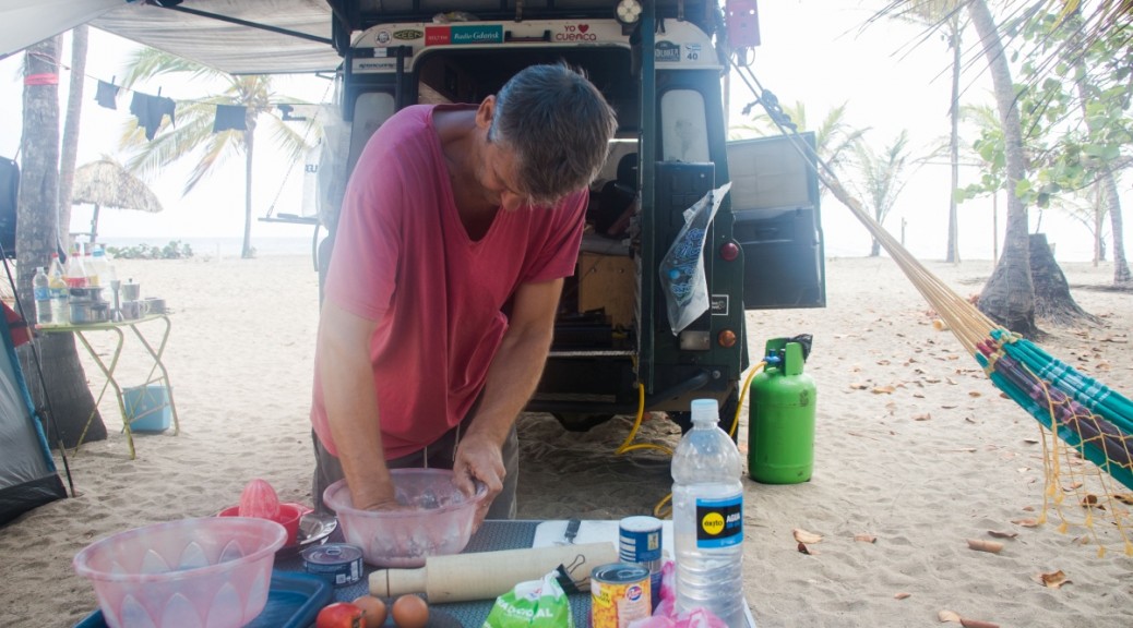 Dziś Krzysztof wziął się za pieczenie typowych podpłomyków, czyli nie dodał drożdży tylko woda, sól i mąka. Bardzo mu brakuje chleba… Ja się zabrałam za świąteczną sałatkę z kukurydzy, tuńczyka, cebuli i majonezu. I jajko na twardo. Czyli w sumie żaden wypas. Jakoś sobie trzeba radzić. Tu gdzie jesteśmy nikt nie obchodzi świąt, nie ma nic ze świątecznego nastroju.