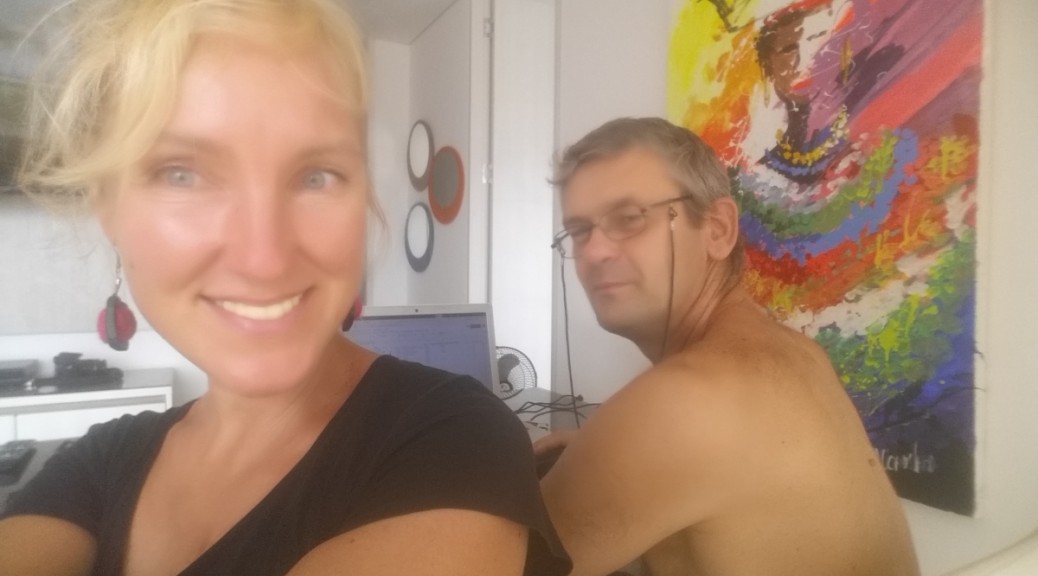 Uważaj o czym marzysz, bo marzenia lubią się spełniać. To powiedzenie dźwięczy mi w głowie od ponad dwóch miesięcy. Kiedy to najpierw utknęliśmy na rajskiej plaży, by po 7 tygodniach przenieść się do w miarę luksusowego jak na nasze oczekiwania apartamentu (z pięknym fotelem typu jajo i jeszcze do tego czerwonym). Wszyscy marzą o rajskiej plaży. Wszyscy mówili, że trafiliśmy cudownie z tą plaza. Teraz wszyscy mówią, ze super taki apartament, że ciepełko, że ładnie. Ciśnienie mi dziś podniosło kolejne zdjęcie na FB. Plaża. I pod spodem komentarz mojej ulubionej psycholożki, że chciałaby tak mieć, że tak marzy, żeby z takim widokiem móc pisać książkę. Ja piszę. No i co? Pot leje się ze mnie strumieniami, jak nie ma włączonej klimy. Włączenie klimy oznacza, że muszę zejść z pięknego tarasu, który w ciągu dnia jest przekleństwem, bo jest tak gorąco , że nie da się wysiedzieć. Od dłuższego czasu usiłujemy się przestawić. Spać może w ciągu dnia i potem wieczorem rozkoszować się temperaturą 28 C na tarasie…