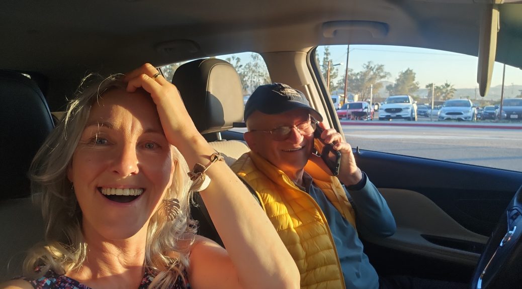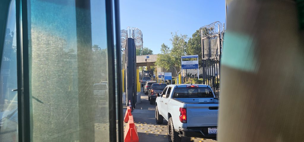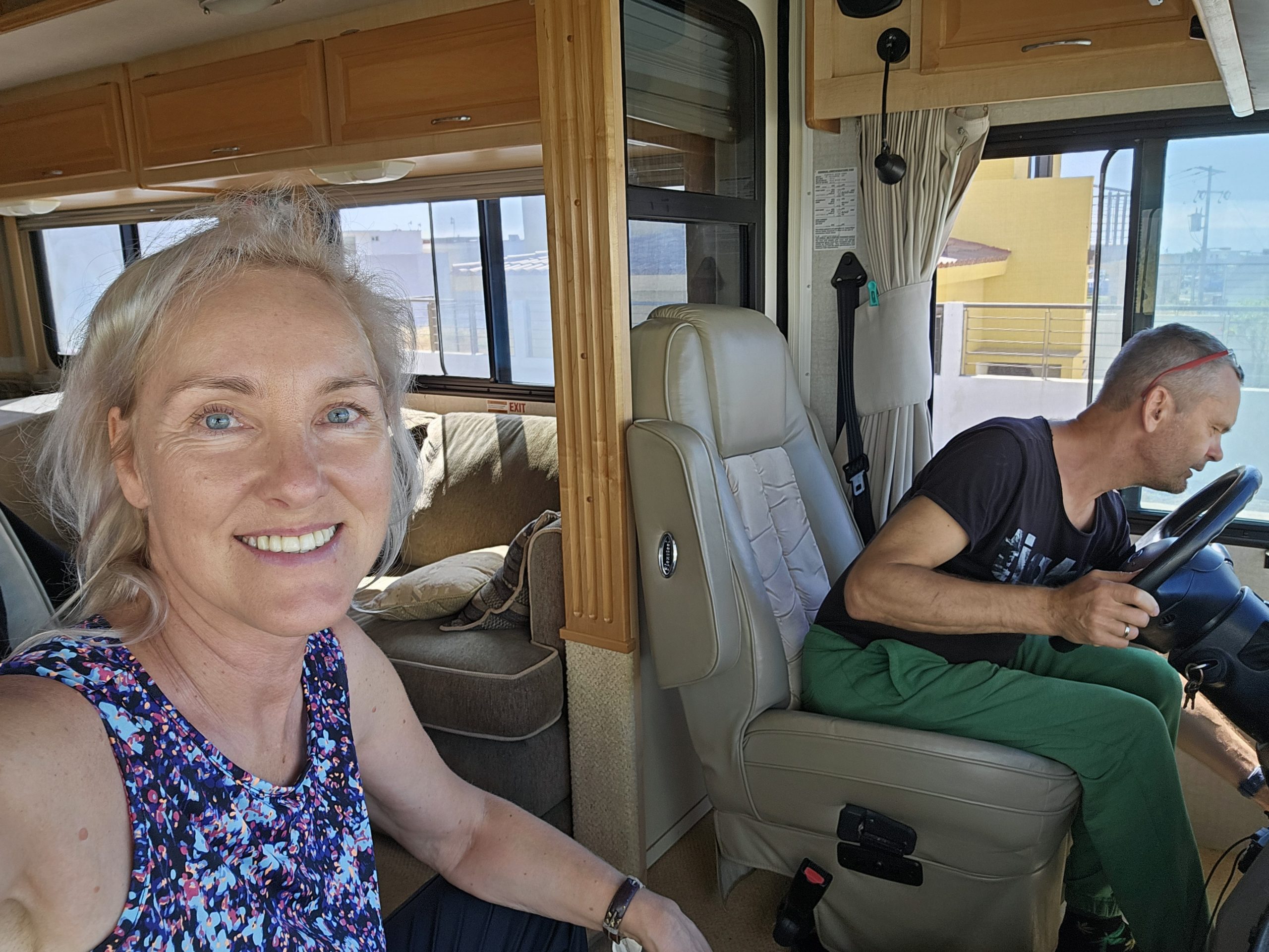 Na granicy niby kolejka mała, ale jednak spedzamy w Tecate przy murze blisko półtorej godziny. Mały dramat, ale się udaje. Najpierw kontrola paszportowa, potem kolejna inspekcja i już. Jesteśmy , za chwilę podjeżdża Andrzej. Czekamy na Iwonę, która jedzie od strony San Isidrio. Potem już szybkie, bardzo szybkie żegnanie się, szybkie, żeby nie płakać. Jedziemy jeszcze 60 mil w zapadających szybko ciemnościach. Dojeżdzamy na taki mini parking dla ciężarówek przy Jakumba. Zasypiamy zmęczeni