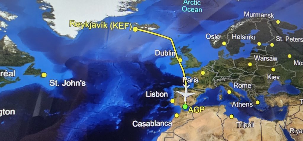 Tak. W jeden dzien zaliczamy Islandię i docieramy do Malagi. o 6 rano lądujemy. Islandia. Keflavik czy jakoś tak, niby Reykyavik ale nie. W sklepie na lotnisku chcę sobie kupić kubez z napisem Islandia, ale szybko wybijam sobie to z głowy (około 11 dolarów w przeliczeniu)