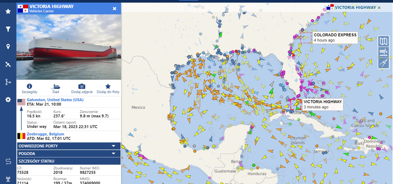 Statek z Defenderem wpłynął już do zatoki Meksykańskiej. Obserwujemy jego pozycję bez przerwy. Ma na trasie jeszcze jeden port w USA potem już wpływa do Veracruz.