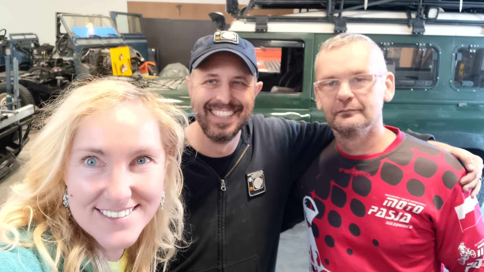 Dzisiaj naprawdę bardzo udany, wspaniały dziań. Przede wszystkim poznaliśmy Brian’a i to jest pierwszy Amerykanin, który nas zachwycił. Chyba wszystkim. Ale do brzegu. Wczoraj podjechaliśmy pod warsztat wieczorem, znaleźliśmy małą alejkę i tam spaliśmy na noc. Rano podjechaliśmy na stację, dokonaliśmy niewielkiej toalety i wróciliśmy do warsztatu. Brian otworzył drzwi, zaprosił nas do środka, od razu poczuliśmy silną pozytywne wibracje, a do tego okazało się, że naprawdę zna się na rzeczy, wie co to Defender, jak ma działać i czemu właśnie tak. Z Brianem ciekawa historia. Najpierw jeździł na motocyklach, szykował się właśnie do rajdu Dakar, który odbywał się pierwszy raz w Ameryce Południowej. Niestety, podczas treningu na jakiś szutrach w lesie wyskoczył mu jeleń pod koło…