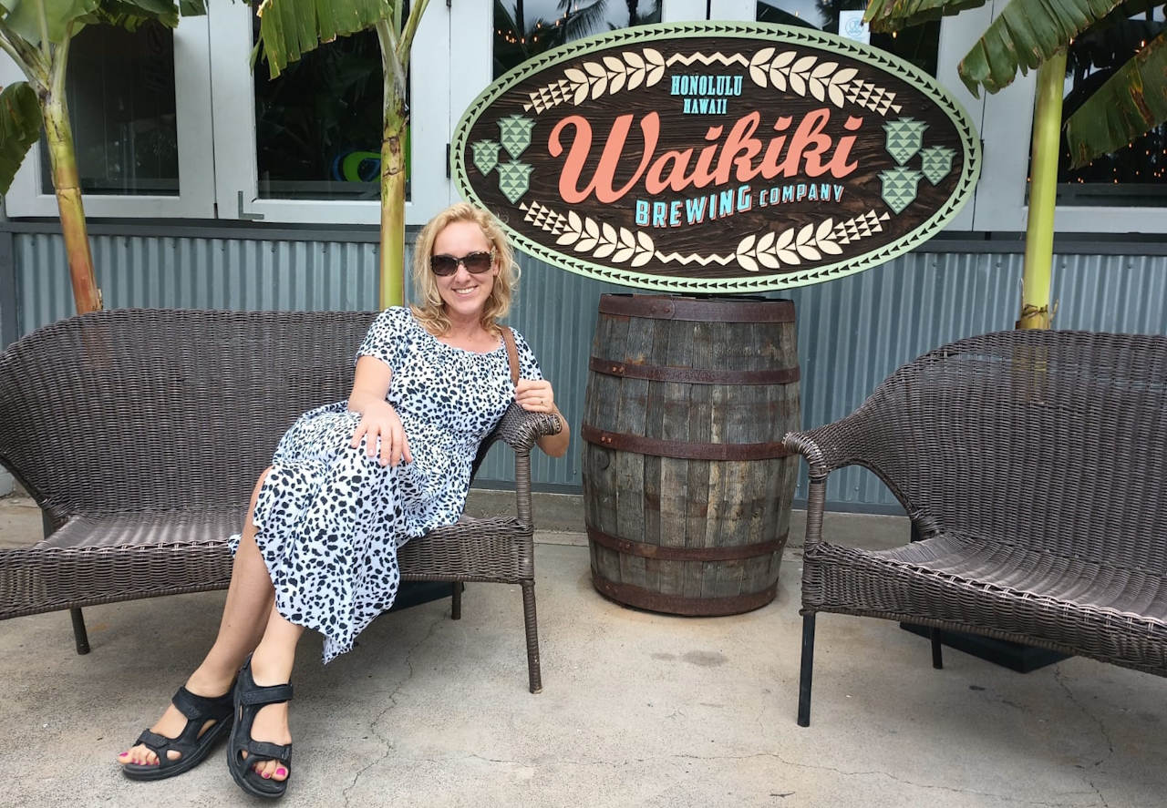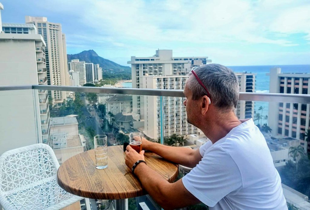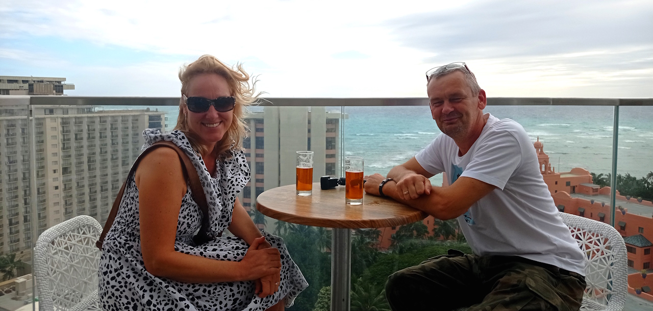 Dziś o 16.00 poszliśmy spełnić moje marzenie i wjechaliśmy na wysokie 18 piętro do sky Waikiki, baru i restauracji z widokiem na wulkan Damond Head i część dzielnicy Waikiki. Wypiliśmy z mężem piwo w całkiem dużym wietrze, ale nic nie zmąciło radości i szczęścia z bycia w tym miejscu.
