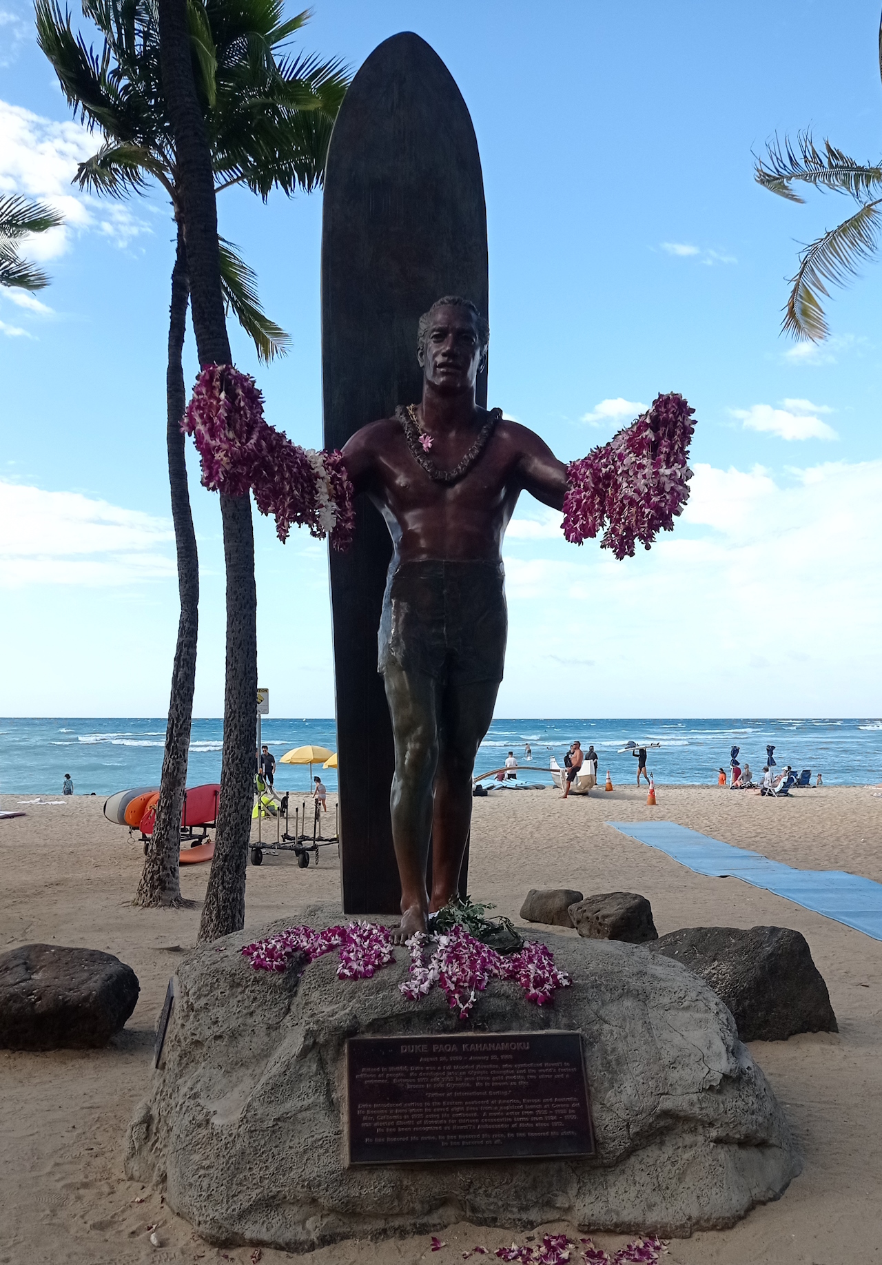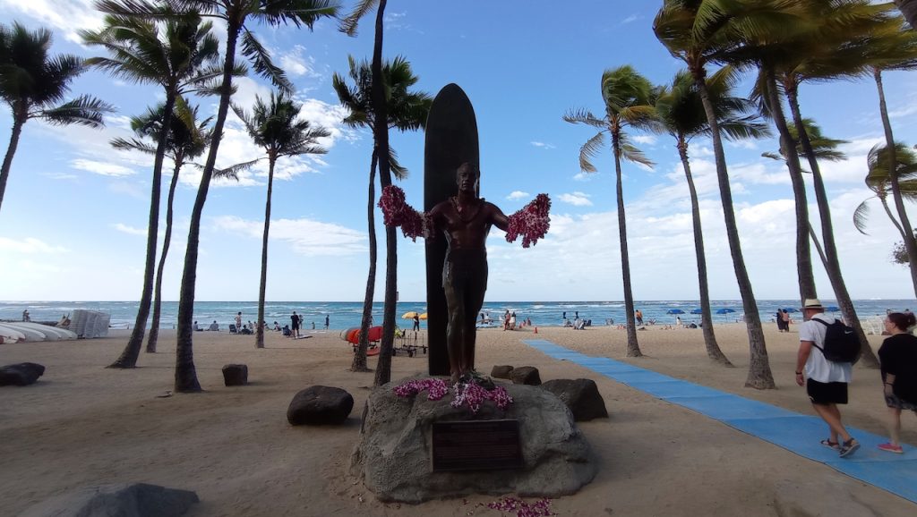 Znakiem rozpoznawczym dla Hawajów jest surfing, deska surfingowa to podstawa. Ponadto tutejsze żółwie, które już widzieliśmy wczoraj (sztuk trzy…) podobno z Honolulu organizowane są wycieczki do pobliskiego morskiego kanionu wodnego, w którym można oglądać piękne okazy żółwi hawajskich.