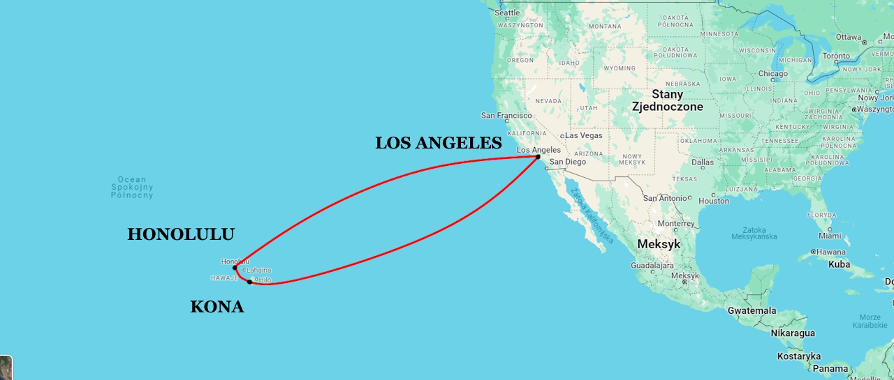 Lotnisko w Kona jest niewielkie, znaczna jego część jest „na świeżym powietrzu”. Tuż po 15 rozpoczął się boarding, sprawnie weszliśmy na pokład i już po chwili byliśmy w powietrzu.