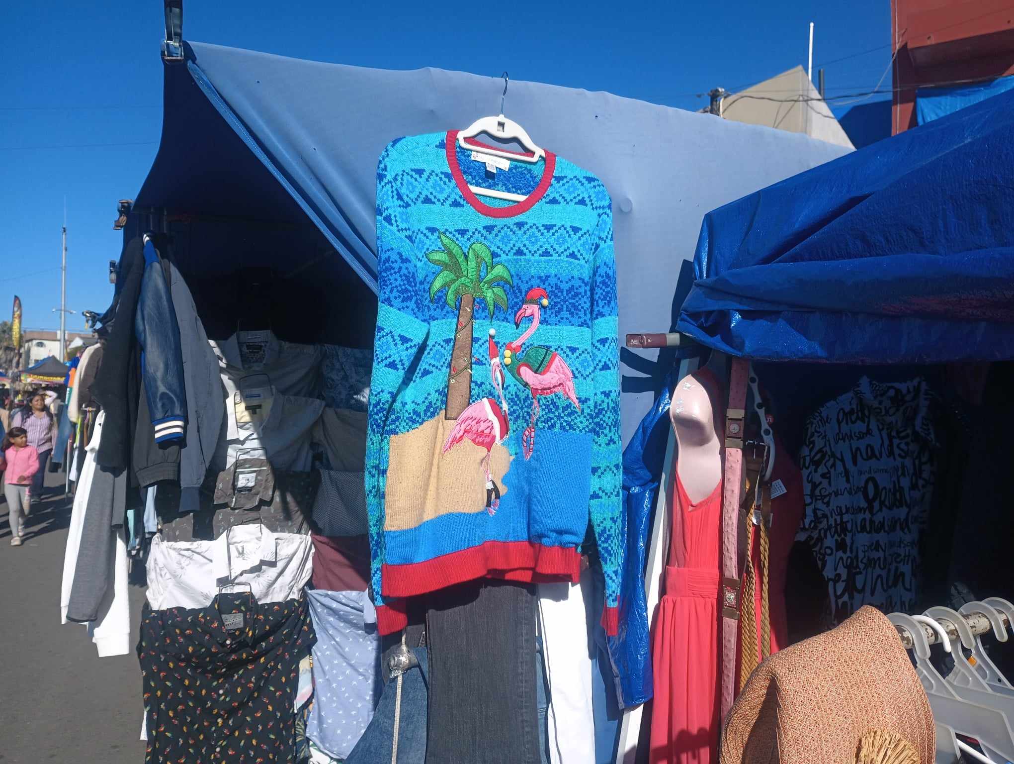 Dzisiaj rynek uliczny. Znowu same gównatusy. Ale porozciągany sweterek z różowymi świątecznymi pelikanami przebił wszystko…