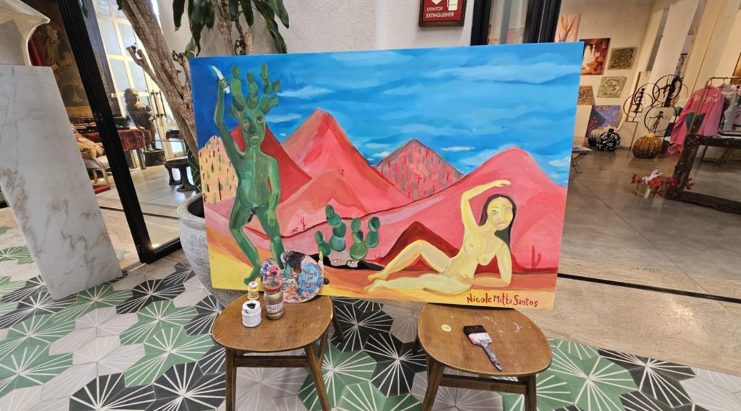 Decydujemy żeby się jednak ruszyć. Nie czujemy się najlepiej, Krzysiek ciągle kaszle i ma katar i ogólnie słabo, ale jednak jedziemy do Todos Santos. Jakby to powiedzieć, może zwalić na chorobę, ale miasteczko w niczym nie jest piękne. Nie ma uroku tylko pełno amerykańskich sklepików, restauracyjek i knajpek. Mówiąc amerykańskie chodzi o to że ceny stosunkowo wysokie. Ale już nie ma co psioczyć. Można po prostu powiedzieć,że miasteczko jest urokliwe i już. Choć tego uroku trzeba ze świecą szukać. Robię parę zdjęć pamiątek, żeby przesłać bliskim. Zjadamy pizzę we włoskiej knajpce, tak lekko, na lunch. Mam kryzys Oczy łzawią, katar przyszedł i kaszel nie z tej ziemi.