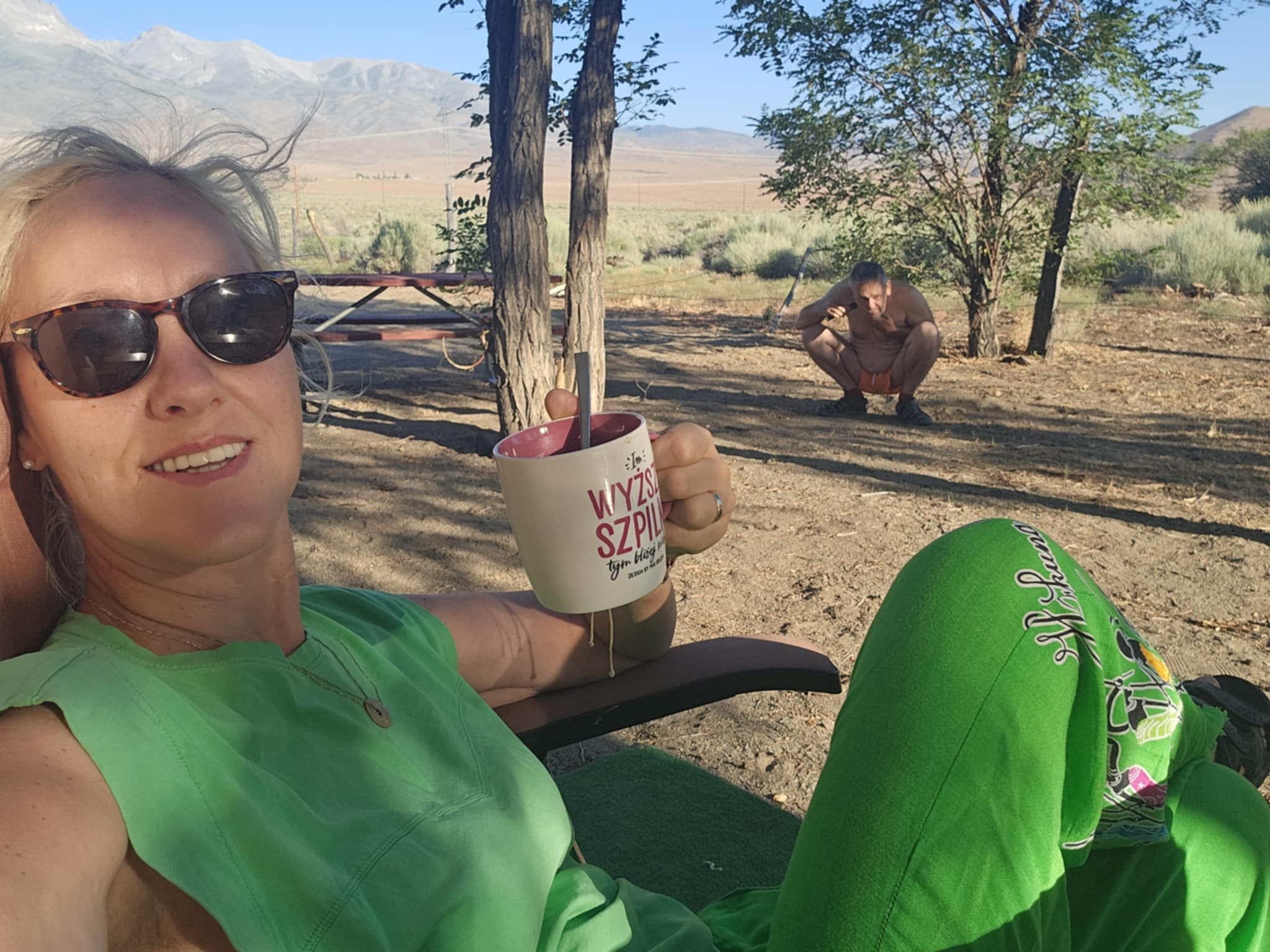 Gorąco. W samochodzie mnóstwo stopni. Kimatyzacja troche schładza, ale wciąż za mało. Lodówka nie daje rady. Zepsuł się łosoś którego nie zdążyliśmy zjeść na grila. Upiekliśmy go i kawałek zjedliśmy, ale chyba lepiej go nie jeść zadecydowaliśmy. Nienawidzę wyrzucać jedzenia.