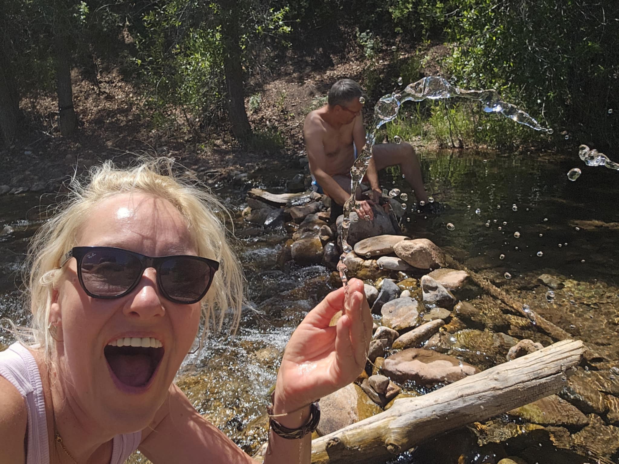 Czekaliśmy pół dnia na informację od Iwony, bo przez nią zamawialiśmy panele, a tu nic. W końcu przyszła informacja, ze mają być jutro. No to trochę pobaraszkowaliśmy w rzece, a potem pojechaliśmy zobaczyć drugą drogę. tam są dwa kolejne kampingi, tylko już płatne.