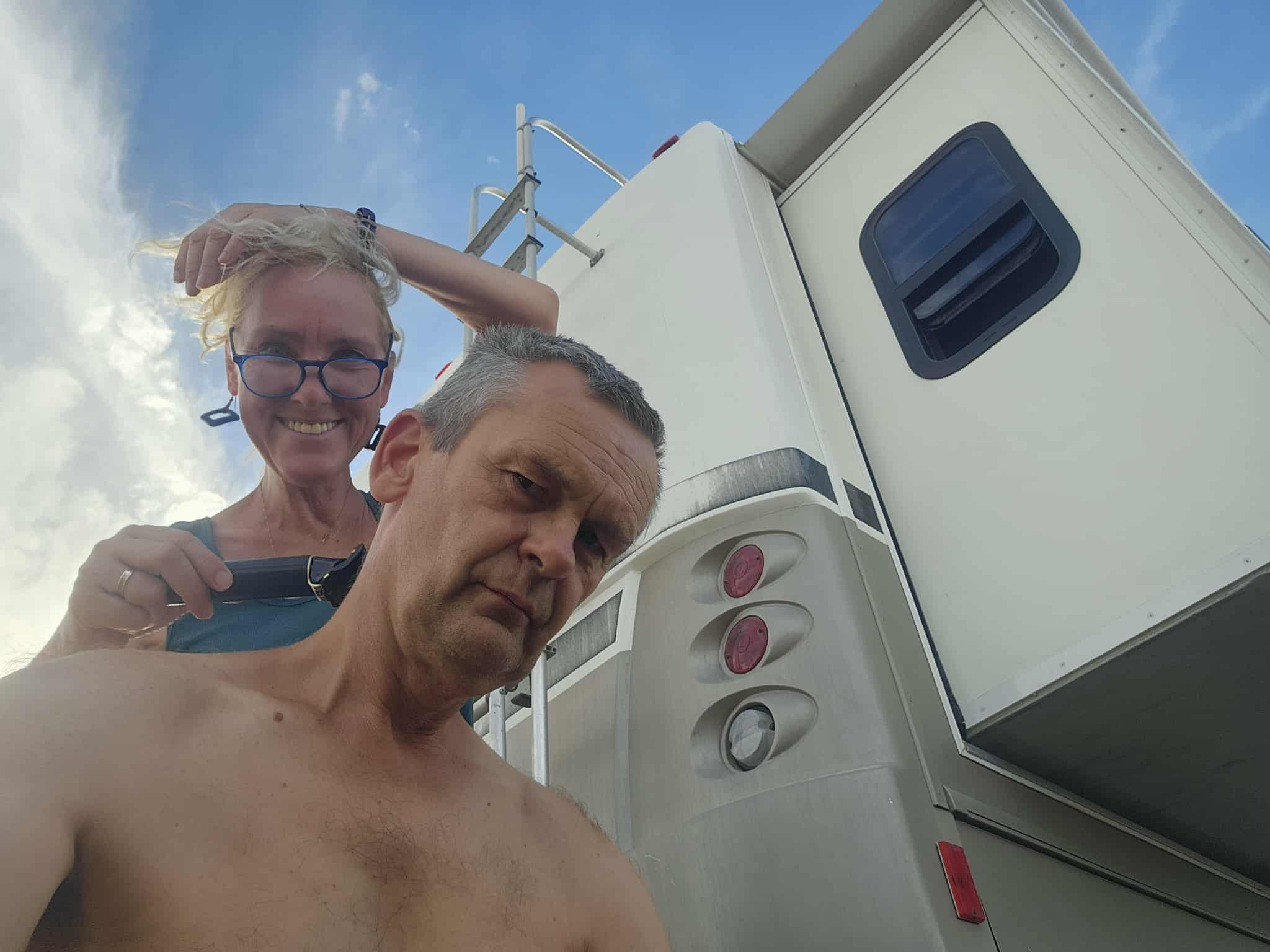 po południu jeszcze ubieram okulary i biorę sie za strzyżenie Krzysztofa. Nie będę nigdy fryzjerką, ale obstrzyc to umiem…