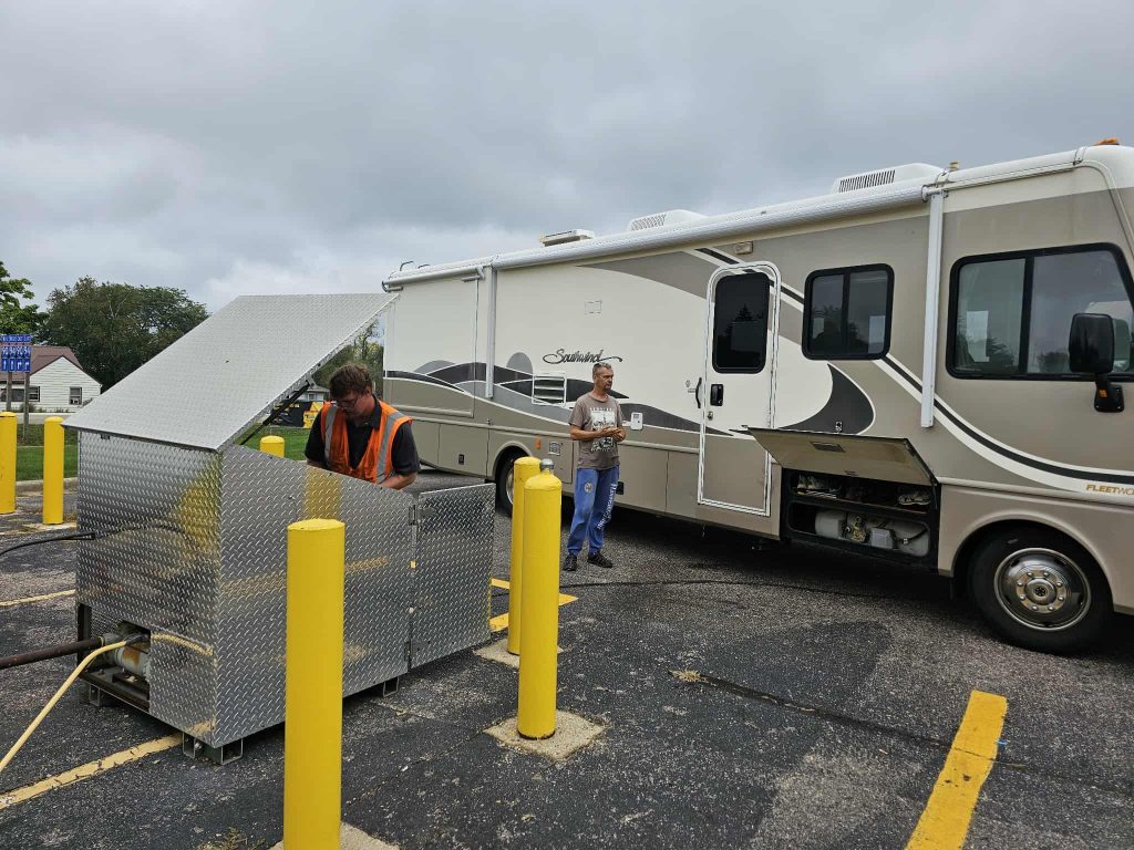 Jedziemy cały dzień spaliśmy na tym nieszczęsnym Rest Area, jak się tylko wjeżdża do Wisconsin. Niby ok ale wiadomo, że za bardzo nie wolno, ,bo są tabliczki że ” no Overnight camping”. Ale przyjechaliśy o zmierzchu, potem w sumie wcześnie rano, chyba o 8 wyjechaliśmy. I jechaliśmy i jechaliśmy i jechaliśmy. W międzyczasie tankujemy gaz, aby mieć pełno. już na zapas.