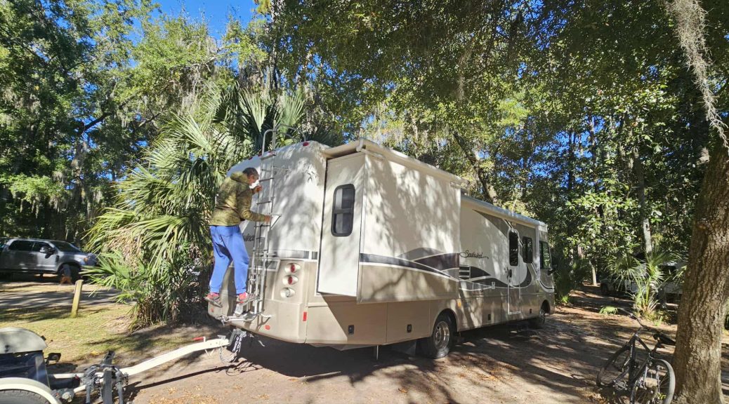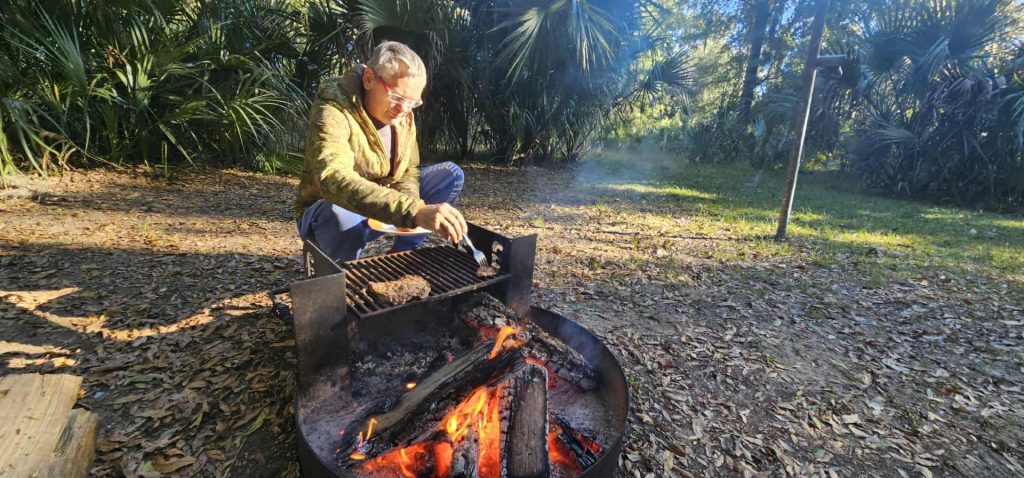 Można powiedzieć że dziś grzejemy się w naszym Luisku. A tak naprawdę chodzi o to , że przyszedł bardzo zimny front z Kanady i wraz z nim bardzo niskie temperatury. W nocy chłodno, śpimy pod grubymi zimowymi kołdrami, a i tak jest w dzień zimno i musimy w zasadzie cały czas uruchamiać ogrzewanie. Ale nie ma tragedii, po południu rozpalamy ognisko. Pieczemy aracherę i jest dobrze.