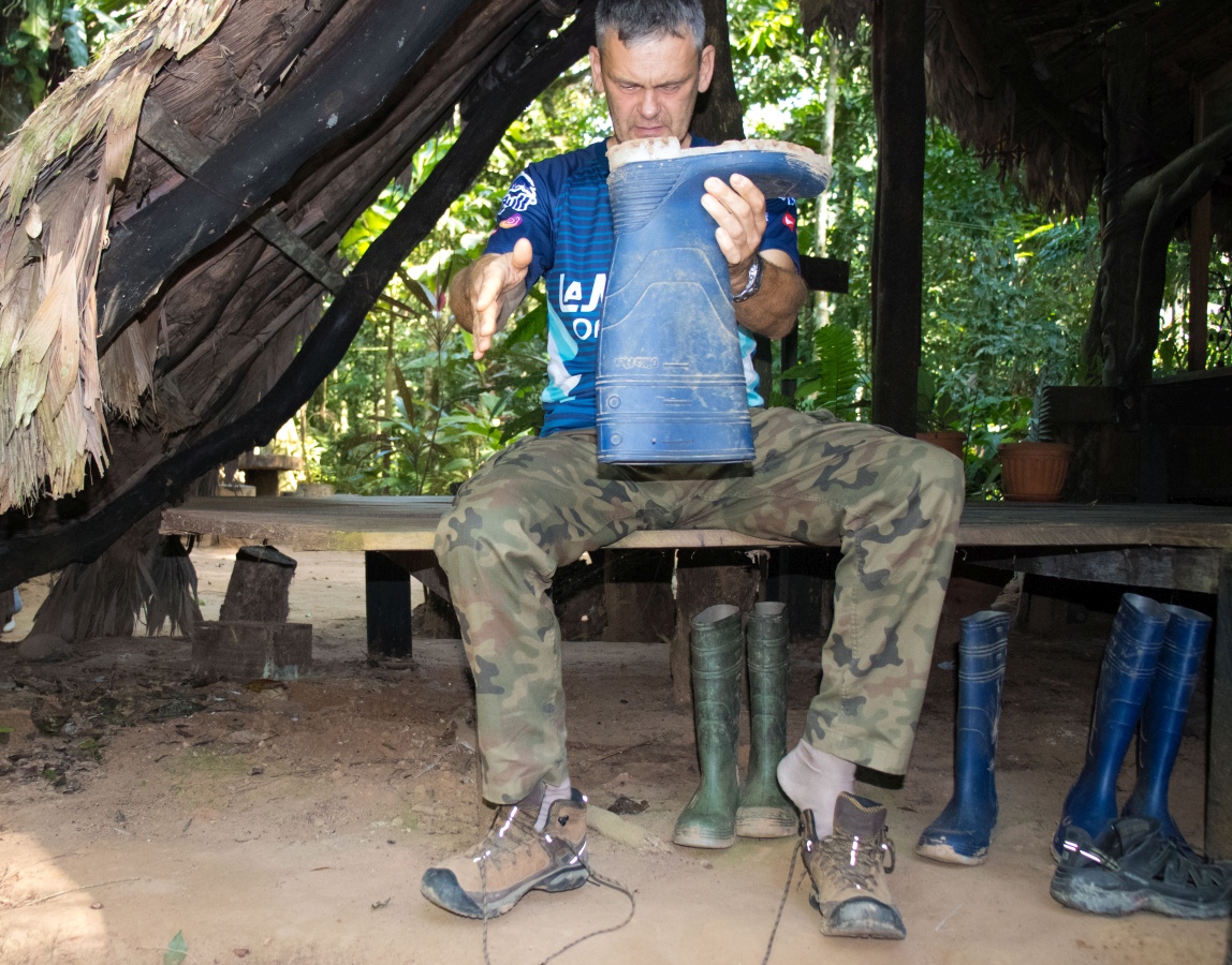 Wstajemy na śniadanie o 8.00 całkiem przyzwoicie. Owoce, papaya, ananasy, pomarańcze. Do tego dziś na słodko..naleśniki, Donaty i inne pyszności. Po dziewiątej czas na prace manualne. Robimy z nasion różnych tutejszych roślin naszyjniki i bransoletkę. Mamy specjalne narzędzia jak jednozębny widelec czy po prostu małe dłutko. Yacira pomaga nam jak może, głównie tka i dzierga ze sznurka połączenia dla naszych koralików. W południe jemy lunch, boliwijskie ciekawostki, kurczaki jak zawsze, do tego różne warzywa, raczej słabo przyprawione, bezsmakowe kalafiory i brokuły ale za to pyszne ryż z soczewicą. Da się zjeść.