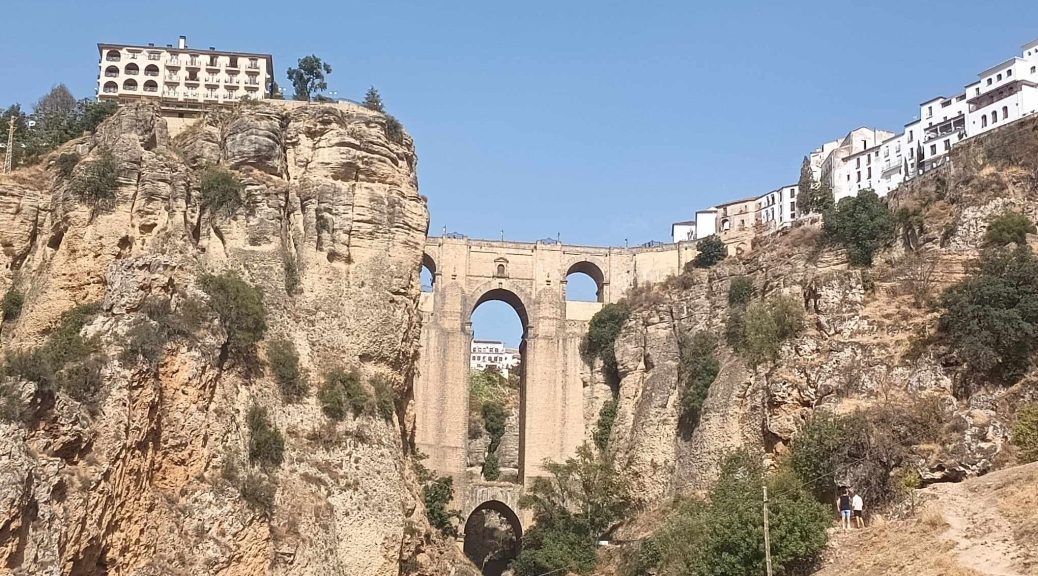 Dziś wyprawa do Rondy, miasteczka uczepionego skał. Imponujące widoki, dziś bardzo gorąco, bardzo gorąco. Dookoła tłumy ludzi, piękna architektura w hiszpańskim stylu. Oliwka gorączkuje, jest niespokojna, ale jakoś dajemy radę. Piękna ta Ronda. Zwłaszcza majestatyczny most ze skały łączący oba brzegi urwistych brzegów skał.
