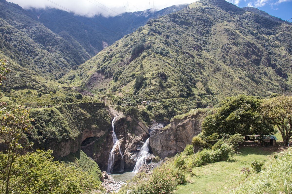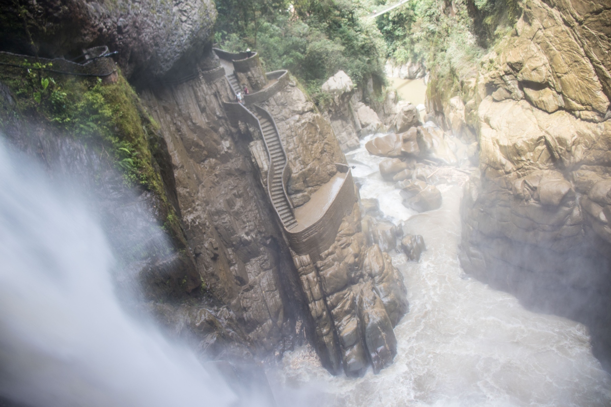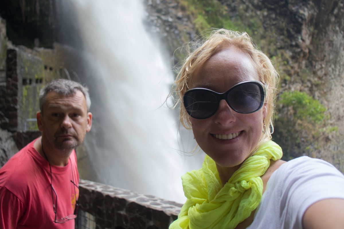 Zapadły decyzje. Na święta jedziemy do Franciszkanów do Guayzimi. Oni jeszcze o tym nie wiedzą, ale jak tylko znajdziemy Internet i sieć, to ich poinformujemy. Wyszło nam to z wielu powodów najbardziej optymalną opcją. Którą mamy zamiar wykorzystać. Dziś piękny dzień. Budzimy się patrząc na wulkan Tungurahua. Spokojnie wstajemy, robimy kawę, wcześniej jajecznicę na boczku. Żyć nie umierać. Cisza i spokój dookoła. Nie ma żywej duszy dopiero około 9.00 zaczyna się robić ruch i ludzie przyjeżdżają do casa del arbol, oglądać piękne widoki i bujać się na huśtawce. My powoli zbieramy się, jedziemy do miasta Banos, oglądamy jeszcze raz główny plac, jemy obiad, bardzo wcześnie dziś i ruszamy drogą wodospadów do Pillon de diablo czyli najpiękniejszego w tych okolicach wodospadu.