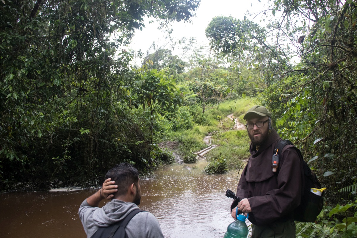 To jest najgorsze. Co boli. Na pewno bolą grzbiety stóp, bo najbardziej pracują, kiedy gumiaki wyciągasz z błota, kiedy próbujesz zrobić kolejny krok. Co jest ważne w wyprawie do Chumpianz. Po pierwsze weź gumiaki, które pasują do twoich stóp, nie za duże, inaczej będziesz cały czas borykał się z problemem wyciągania kalosza z błota. Samego buta, bo twoja stopa już dawno powędruje dalej, czyli skarpetki na sto procent masz już mokre i utytłane w błocie. To pierwszy ważny element wyprawy do Chumpianz. Druga rzecz nie zapomnij o energetycznych cukrach, które są niezbędne w tej wyprawie. O ile cola to trucizna, tak w tej mordędze uratowała mi życie. Oczywiście trzeba coś mieć do jedzenia, ale akurat w tej wyprawie wystarczyły tamales, czyli mielona kukurydza z kurczakiem, zawinięta w liście kukurydzy, trochę ciastek i słodkie bułki z piekarni w Guayzimi. Zjadliwe, a ich jedyna zaleta to kalorie i cukier, które pozwoliły przeżyć. Kolejny element. Bielizna i ciuchy na zmianę. Pierwszy etap naszej wyprawy był niezmiernie trudny, potem było już tylko gorzej. Czytaj trudniej. Po 10 minutach wędrówki, doszliśmy do pierwszej przeprawy na rzece. Nadeszła chwila prawdy, musieliśmy podjąć decyzję co robimy, czy idziemy dalej, czy już na starcie rezygnujemy. Ale nie, w nas była wola dotarcia do Chumpianz/ Poza tym mieszkańcy jeśli coś potrzebują do wioski muszą pokonać trzygodzinną trasę w błocie i pół godziny łodzią. Wszystko. Czegokolwiek nie potrzebują… trzeba przynieść na plecach, jedzenia, desek do budowy domu, garnków, ciuchów, świeczek. W wiosce nie ma prądu. Nie ma telefonów, nie ma niczego, co choć trochę przypominałoby cywilizację… może trochę faktycznie ubrania są z naszej epoki, bo zdawać by się mogło, że będą tam biegać w liściach palm oplecionych na biodrach. Nie. Ciuchy każdy ma współczesne. Generalnie mają wszystko, czego potrzebują. A wszystko czego potrzebują mogą przynieść w plecakach z oddalonej o 3 godziny wioski Shamie, gdzie jest już droga szutrowa do miasta, gdzie są dwa lub nawet trzy sklepy.