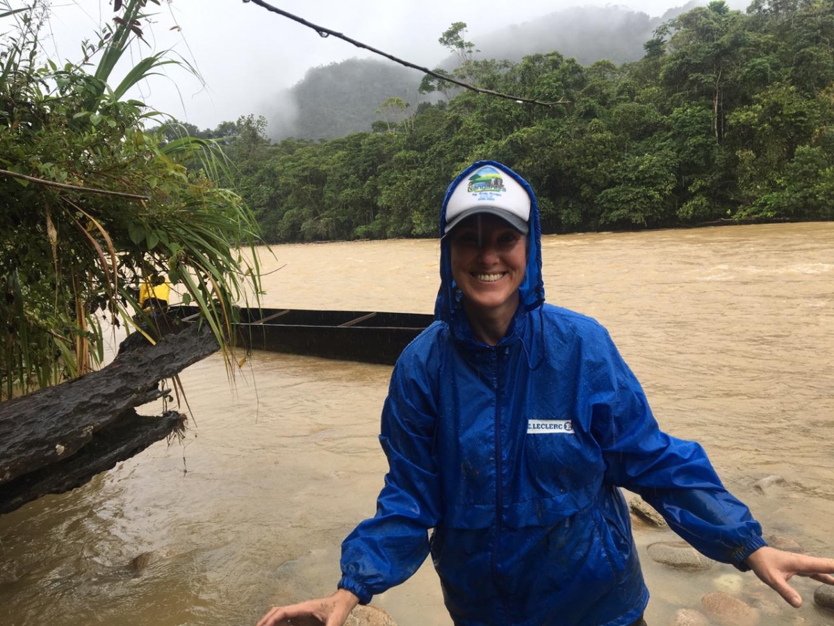 Gdyby nie deszcz to widzielibyśmy jak malownicza jest rzeka i okalająca ją dżungla. Mijamy piękne wodospady, dookoła zielono i naprawdę niesamowicie. Ale nie ma co się rozglądać. Człowiek walczy tylko z tym, żeby łódź się nie wywróciła, balansując w miarę przechyłu bocznych burt na obie strony.