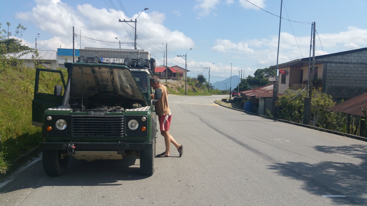 Po około 150 km mamy problem! Krztusi nam się silnik, traci moc. Biały dym leci z rury wydechowej… Co robić? Pogoda piękna, a my zwalniamy, bo auto niestety nie chce jechać. Po ponownym uruchomieniu silnika jedzie, ale za jakieś parę kilometrów znowu traci moc. A przecież problem wydawał się być rozwiązany w Guayzimi, po gruntownym wyczyszczeniu układu paliwowego!